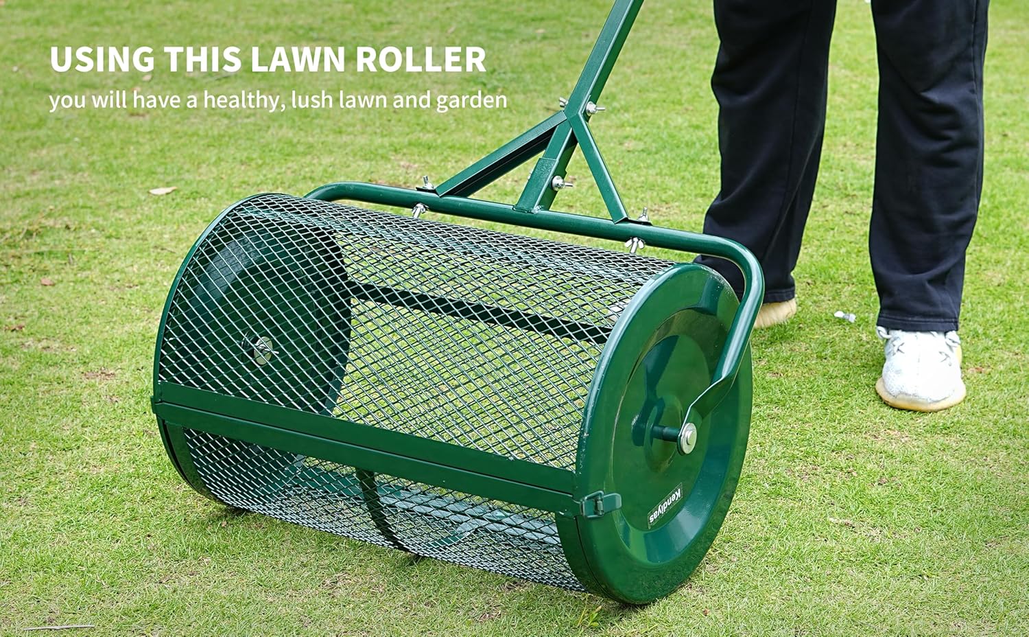 • Multifunctional Spreader: Our peat moss spreader effectively breaks up clumpy materials while tumbling, ensuring an even flow and spread of products on lawns or gardens. The basket design allows for convenient loading of different types of fertilizers and mulch, making it suitable for everyone to use. Thanks to its durable and lightweight construction, the spreader can be easily rolled on various surfaces.