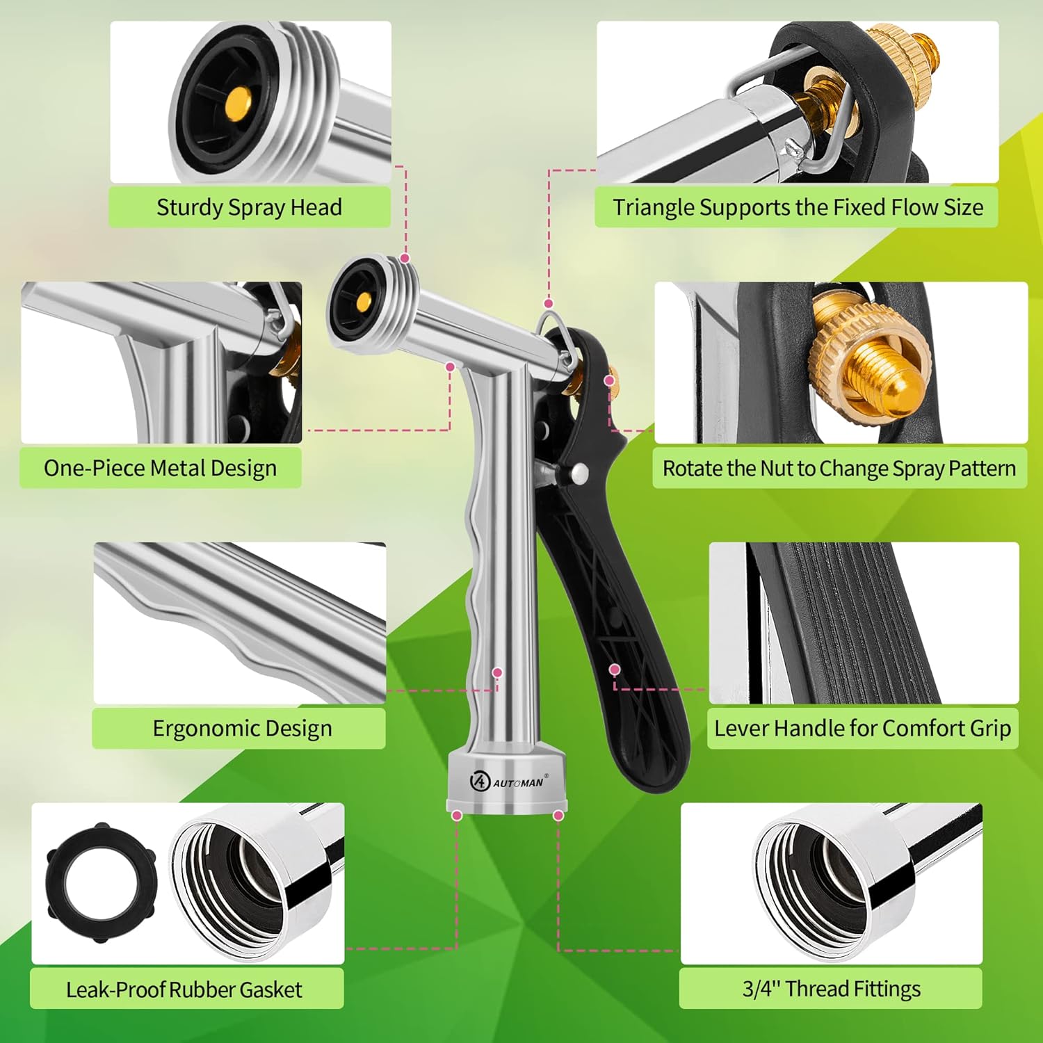 AUTOMAN Garden Hose Nozzle, 1 Pack High Pressure Nozzle, Full Size Pistol Grip Water Sprayer with Threaded Front, Adjustable Spray Water Flow for Car Washing, Plants Watering, Pets Showering, Cleaning
