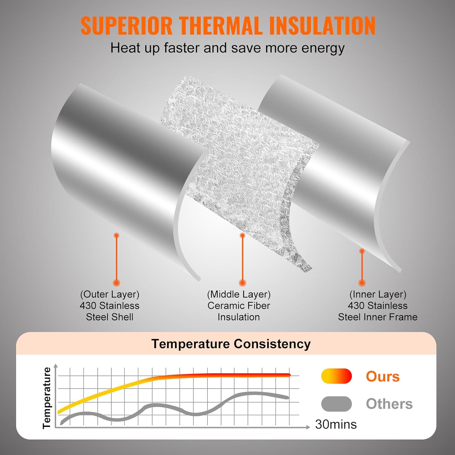 • Retain Heat for Extra Taste: The portable pizza oven for outside is CSA certified and built with 430 stainless steel inner frame, ceramic fiber insulation cotton, and cold-rolled sheet shell for enhanced quality. This 3-layer thermal insulation structure provides the best heat preservation, allowing you to enjoy your food quickly.