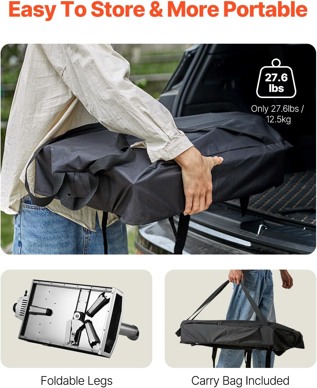 • Portable Outdoor Oven: This pizza oven boasts a lightweight 28.9 lbs, making it easy to carry to your backyard, campsite, beach, or any outdoor gathering place. Its foldable legs make it even more compact, and we also provide a wood pellets shovel and carry bag for added convenience.