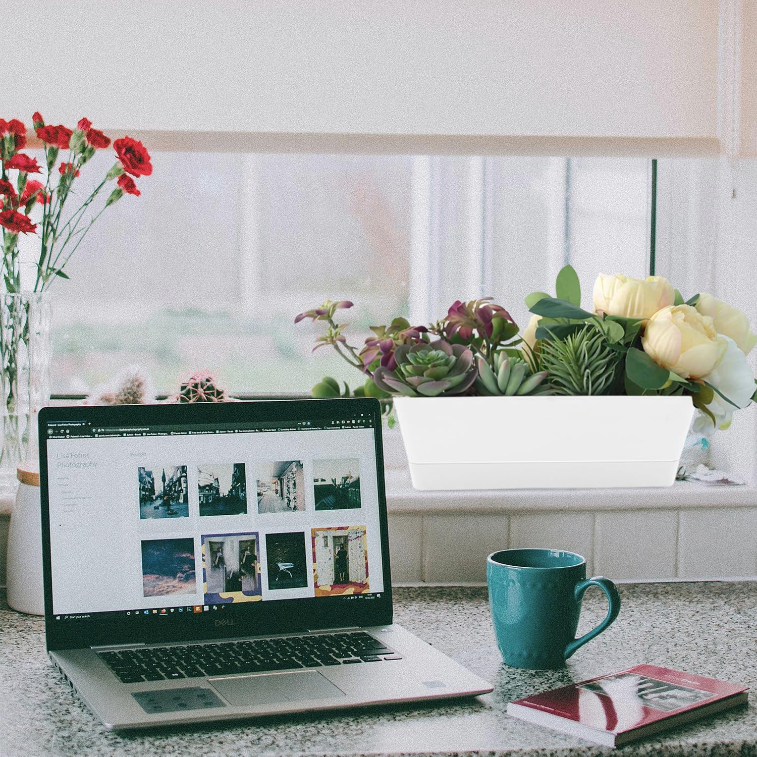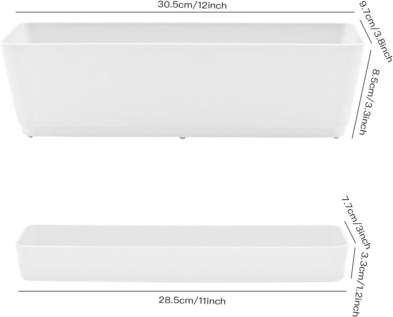 Lainrrew 3 Pack Window Box Planters, 12 Inches Rectangular Planter Plastic Flower Box Plant Pots Plant Containers with Tray for Balcony, Windowsill, Garden, Home Office Outdoor Decoration, White