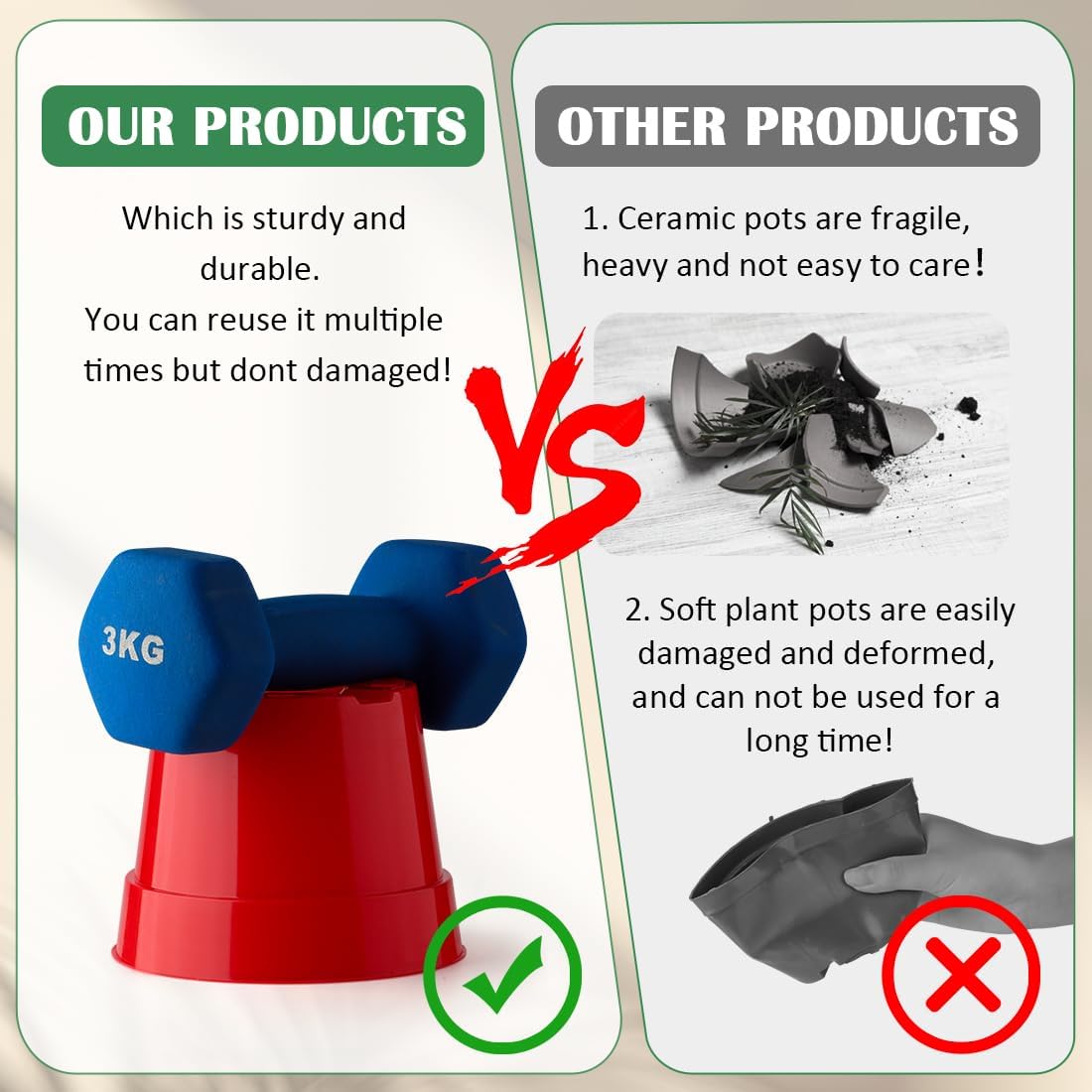 • 【Thick Pot Saucers】Thick repeat use pot saucers/dishes are included, Transparent pot trays to hold drainage water and soil.