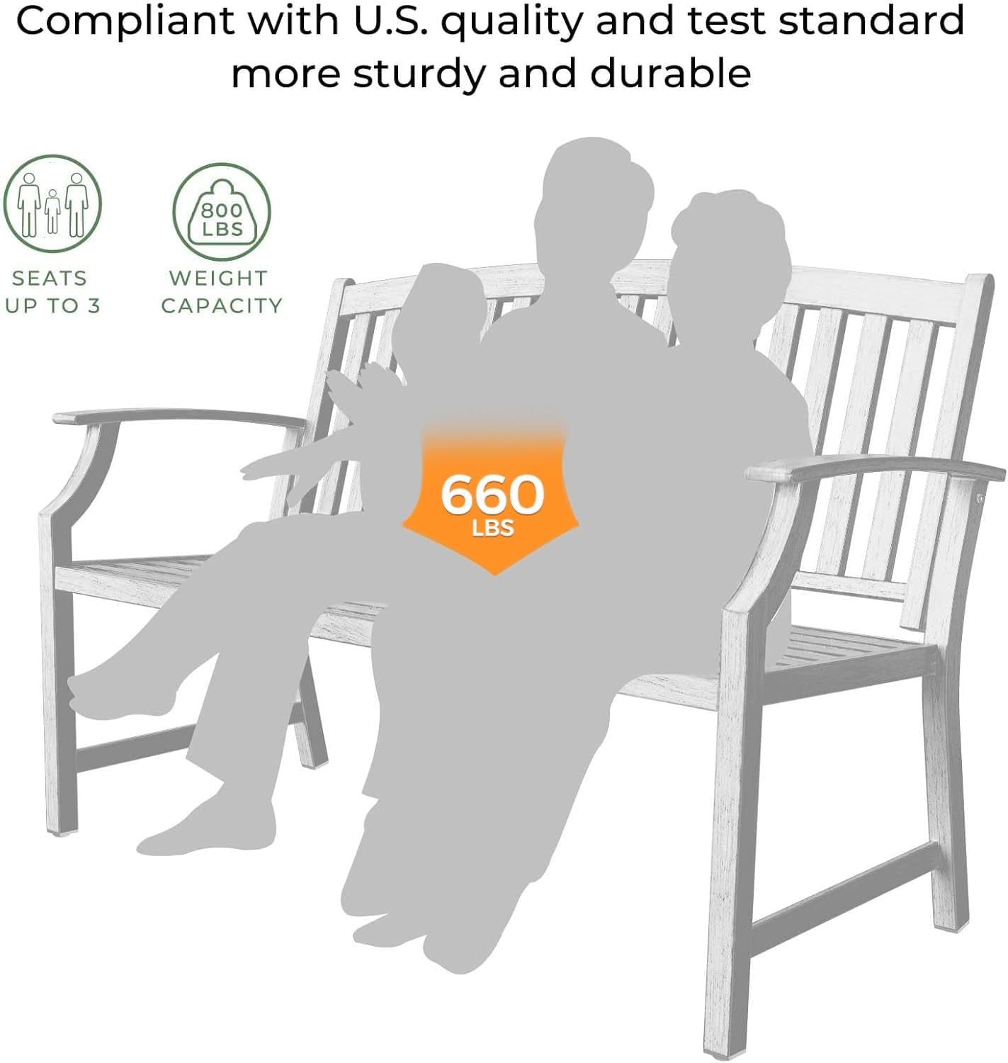 • 【COMFORTABLE SIZE】Overall Dimension 50.39"(L) x 21.92"(W) x 35.03"(H), the seat capacity of garden bench allows up to 2 adults and 1 child to share a space