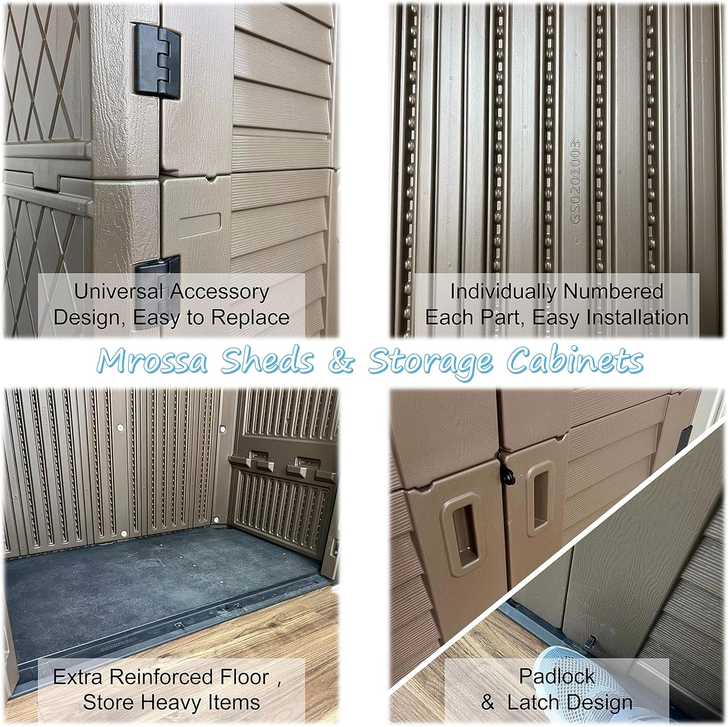 • Detail Design: top groove design helps drainage; lockable; bottom with latch design helps secure door panels; extra shelves help plan storage box space; back with double wall panel design for stronger wind and impact resistance; universal accessory design for easy installation.