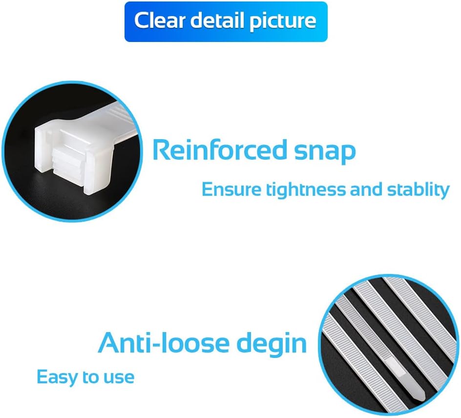 • High Tensile Strength: The 1000Pcs 8Inch White Cable Tie Zip Ties are industrial level heavy-duty ties with a tensile strength of 50 pounds, making them strong enough to secure and organize a variety of items.
