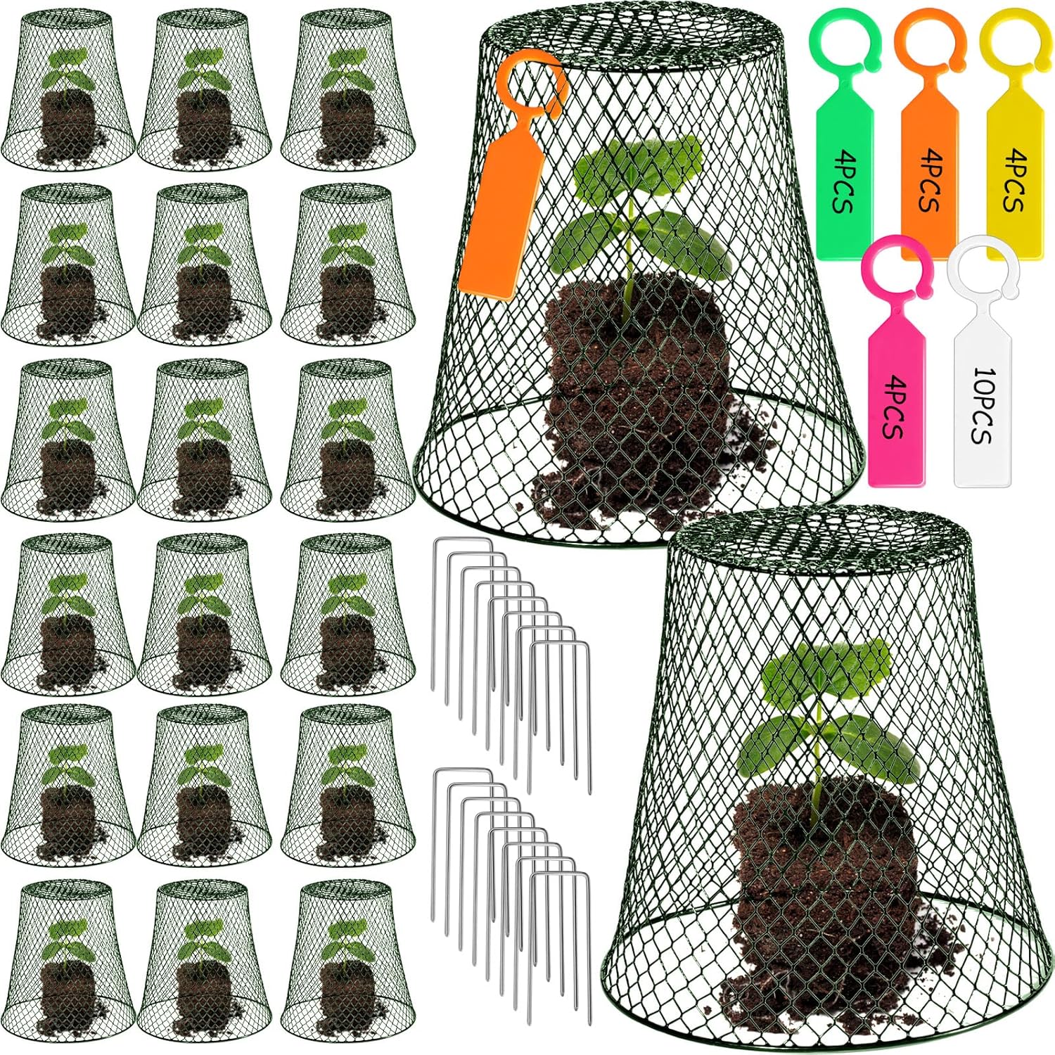 • large quantity:you will receive 20 pieces plant protectors, 60 fixing pins, 20 white labels and 20 color labels,enough green chicken wire protection basket to provide security for your products and guard the fruits of your labor with our all season plant barrier.
