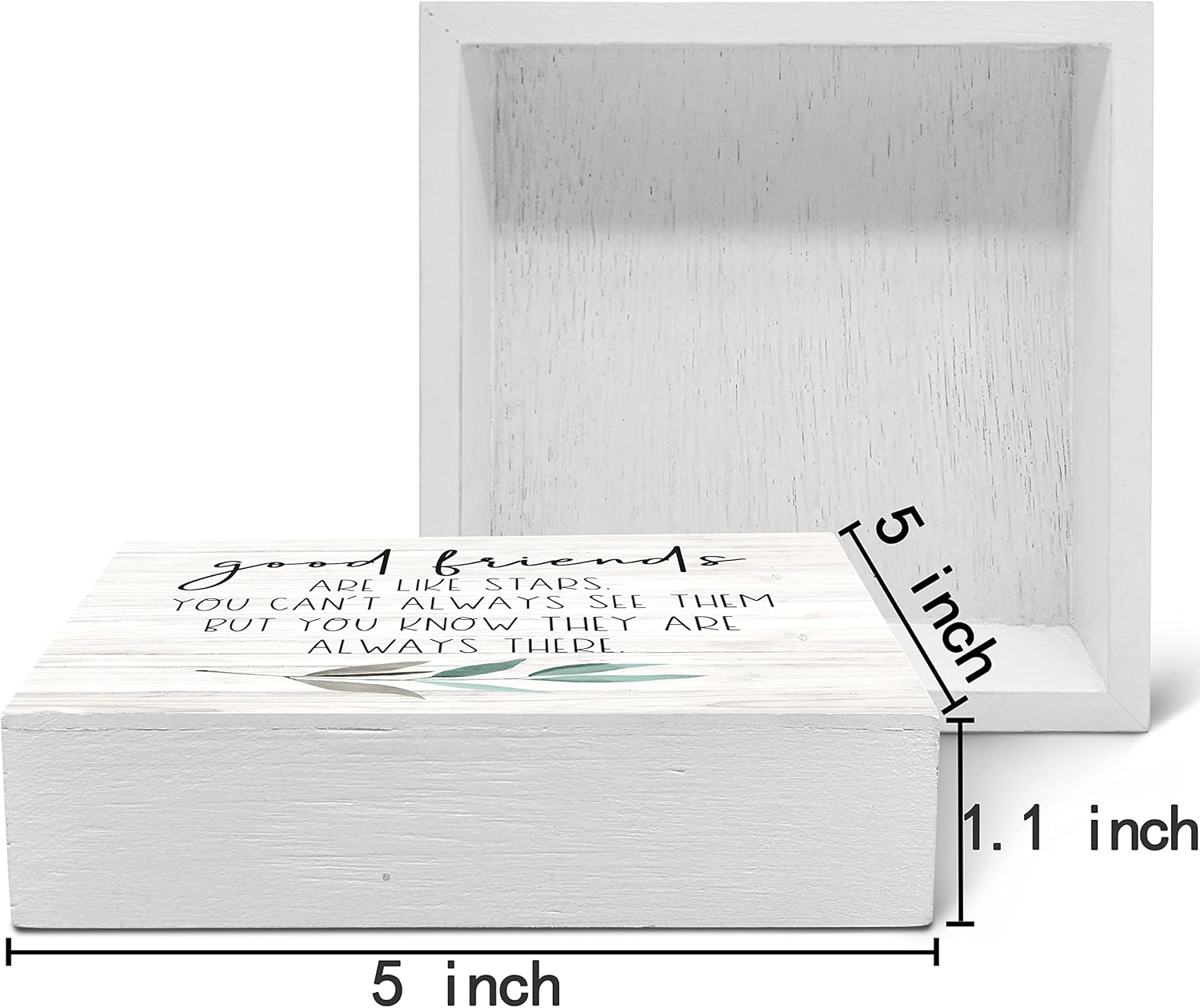 SRADMO Good Friends Are Like Stars Wood Box Sign Desk Decor, Inspirational Long Distance Friendship Wooden Block Box Sign Decoration For Home Bedroom Girls Room Office Shelf Table Decor