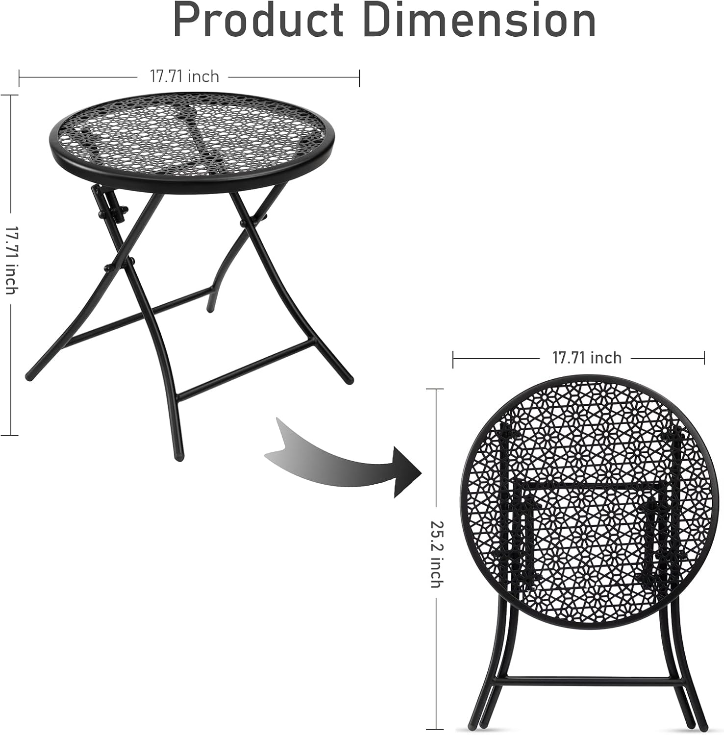• No Assembly: This patio side table is ready to use, no assembly required. The small patio table folds down easily and opens back up fast. This foldable side table is a great buddy of your excursion, you can enjoy your cozy snack time with a smile heart