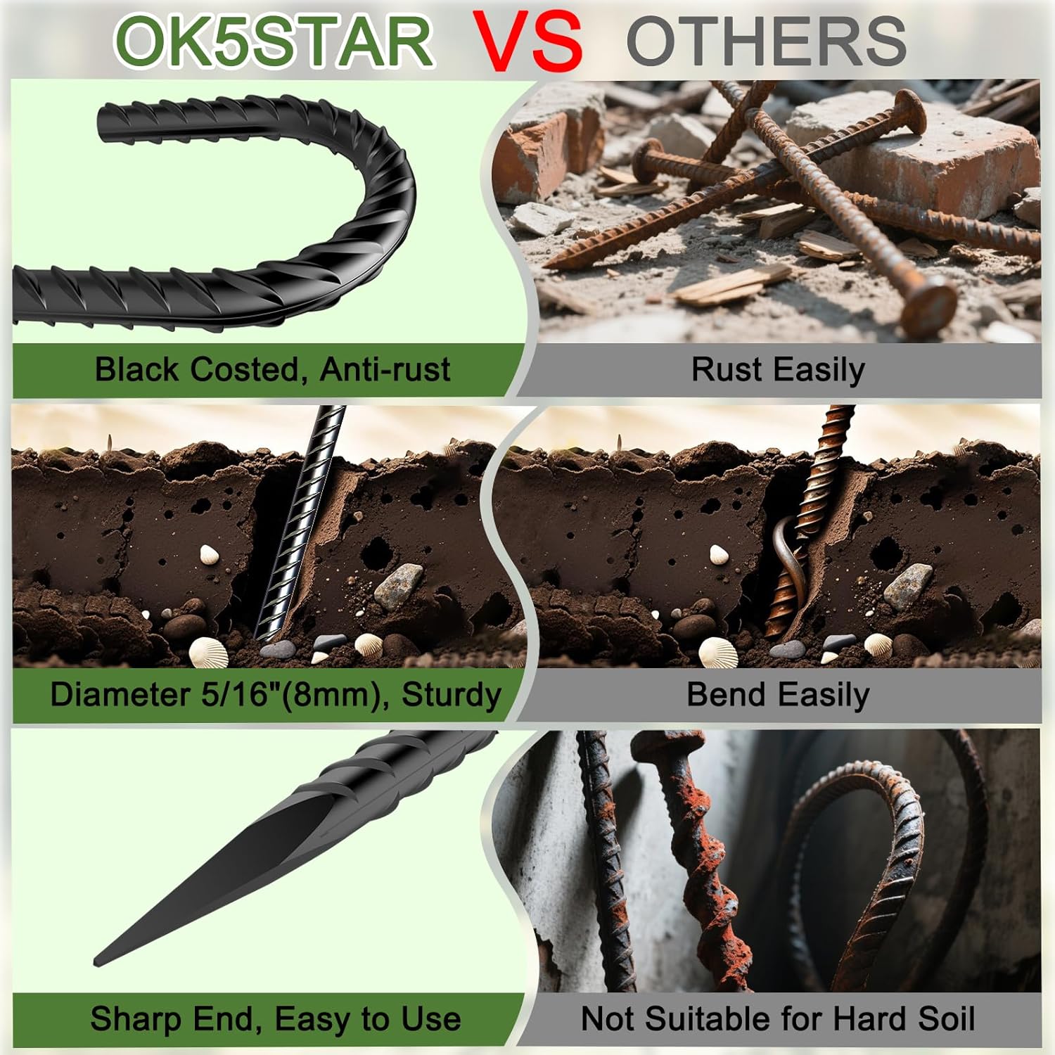 • Easy to Use: Chisel point end makes the j hook ground stakes easy insert into the ground and save effort, easy to hammer down, suitable for all kinds of soil