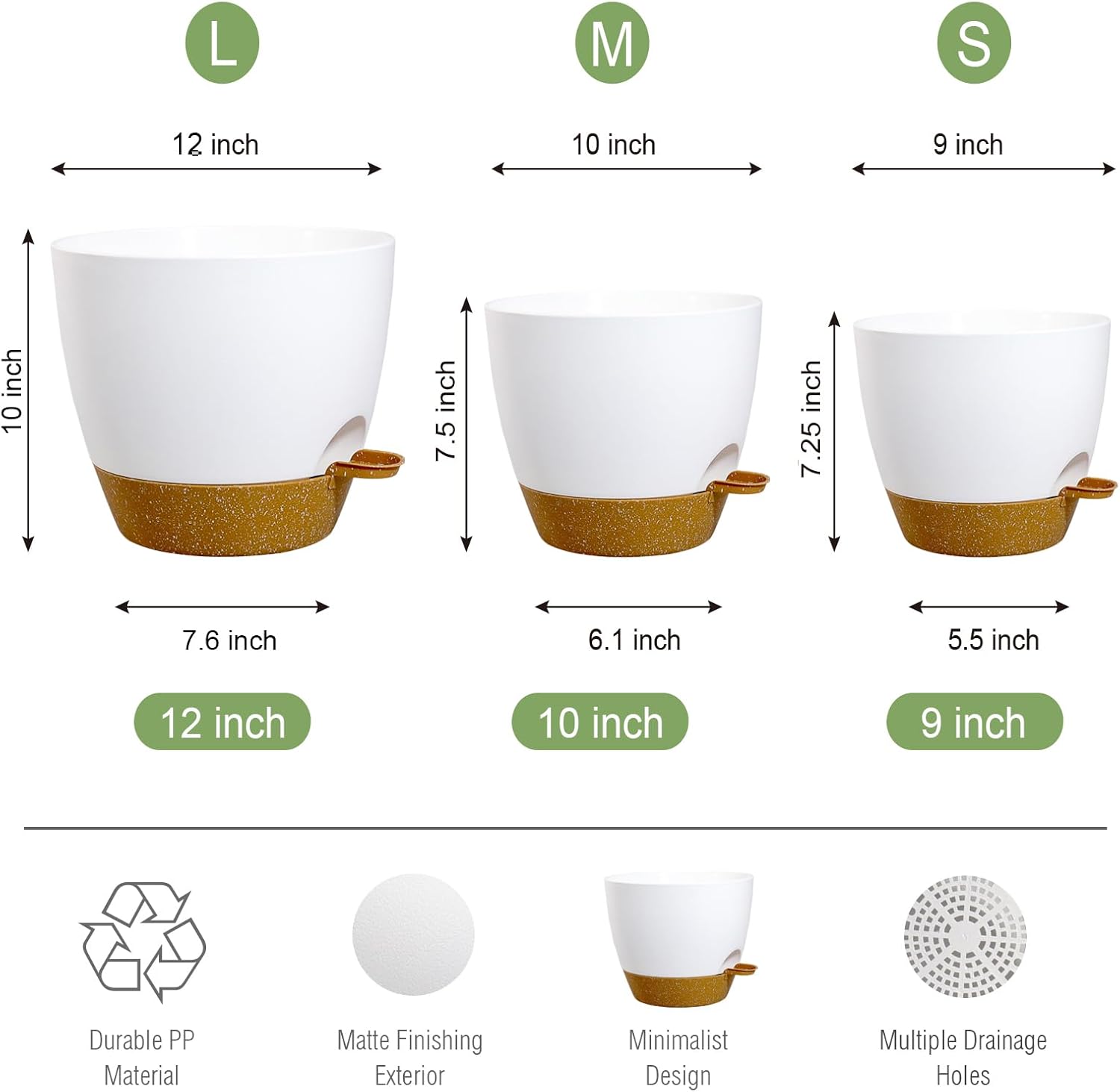 • Self Watering Pots: Combines 3 sizes (12/10/9 inch) for repotting and growing large plants indoors or outdoors.