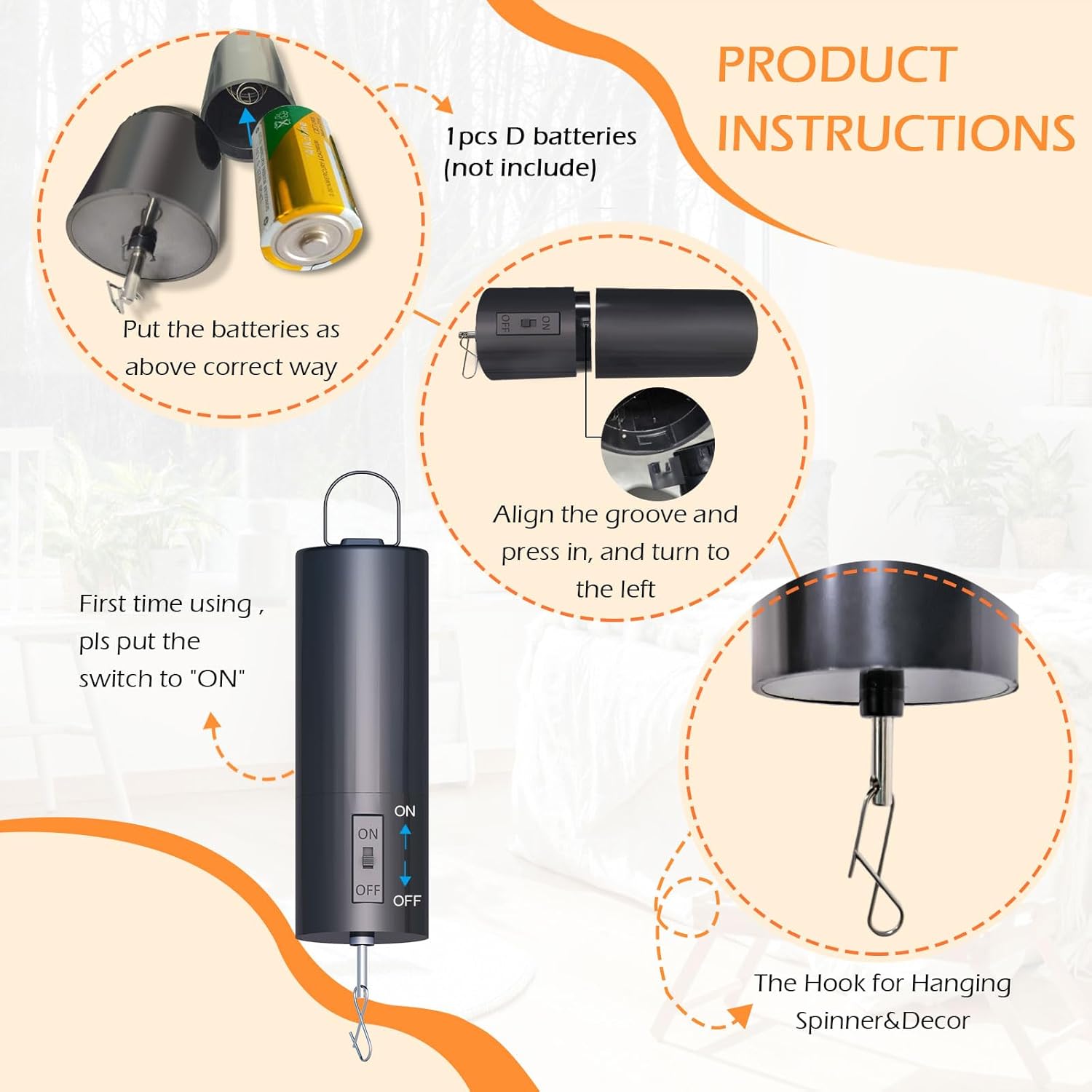 • 【Package Includes】Each purchase includes 1 Colorful gift box,1 battery-operated wind spinner motor.TIPS:Not included Battery.