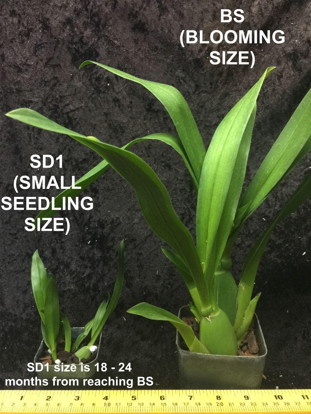 • IMPORTANT NOTE: plants are NOT IN BUD/BLOOM when shipped. PLEASE look at all photos so you know the condition/size of plants offered. SD2 size plants (large seedlings in a 2.25-inch pot) are about two years from reaching Blooming Size. NBS (Near Blooming Size) plants are about 12 - 18 months from Blooming Size. BS (Blooming Size) plants are of a size capable of blooming at the next blooming season.
