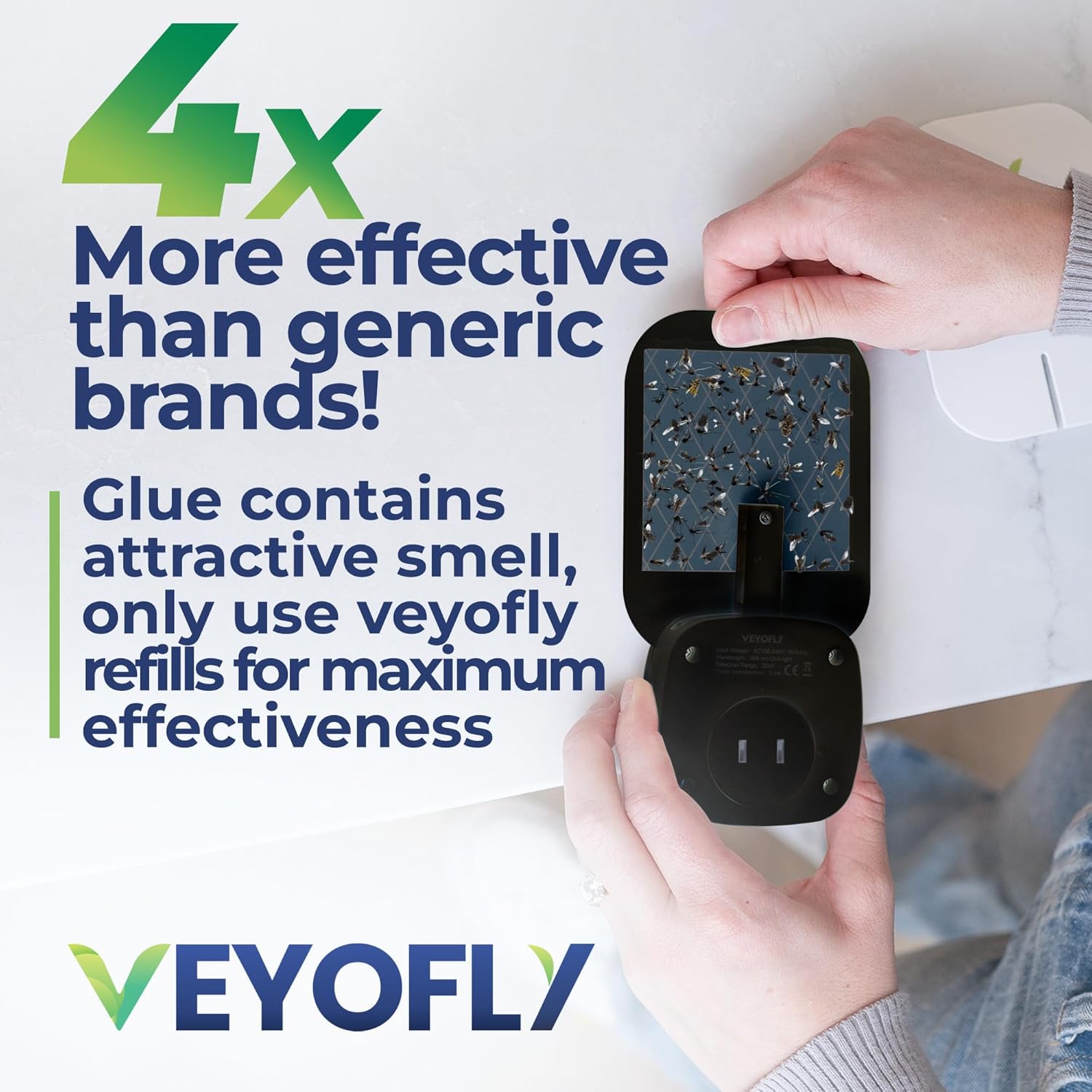 VEYOFLY Fly Trap Indoor, Fruit Fly Traps for Indoors, (4 Device + 12 Refills) Gnat Traps for House Indoor, Fly Catcher Indoor, Plug in Light Flying Insect Trap, Bug Light Killer, Fly Trap