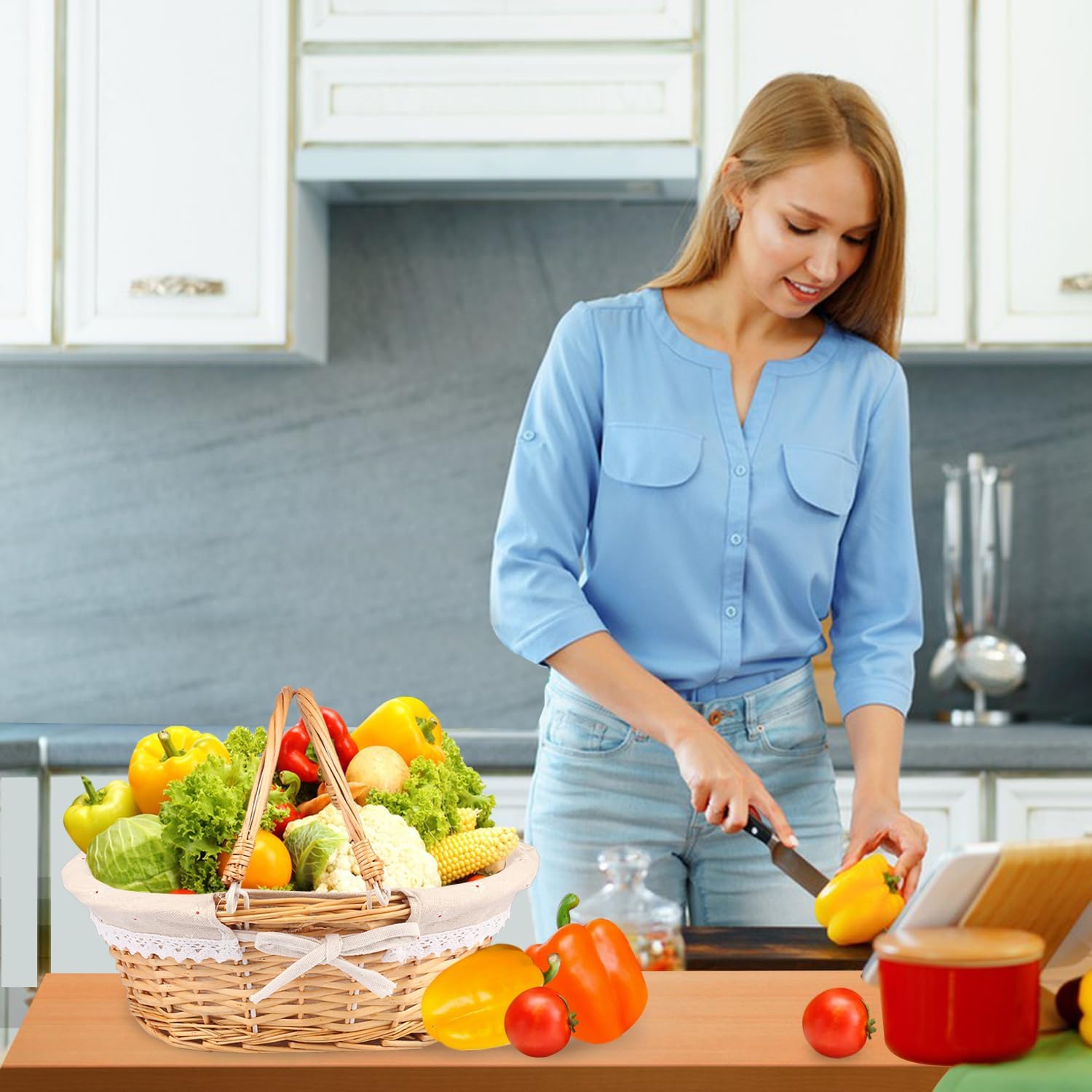 • 【Lightweight and Portable】These Wicker Woven Basket come equipped with convenient double drop-down handles, providing ease and comfort for transporting them to any event. Their lightweight and portable design make them ideal for a variety of occasions, including picnics, weddings, parties, and more. Their sturdy construction ensures your items are kept secure during transport, while their stylish and versatile appearance makes them perfect for any setting.