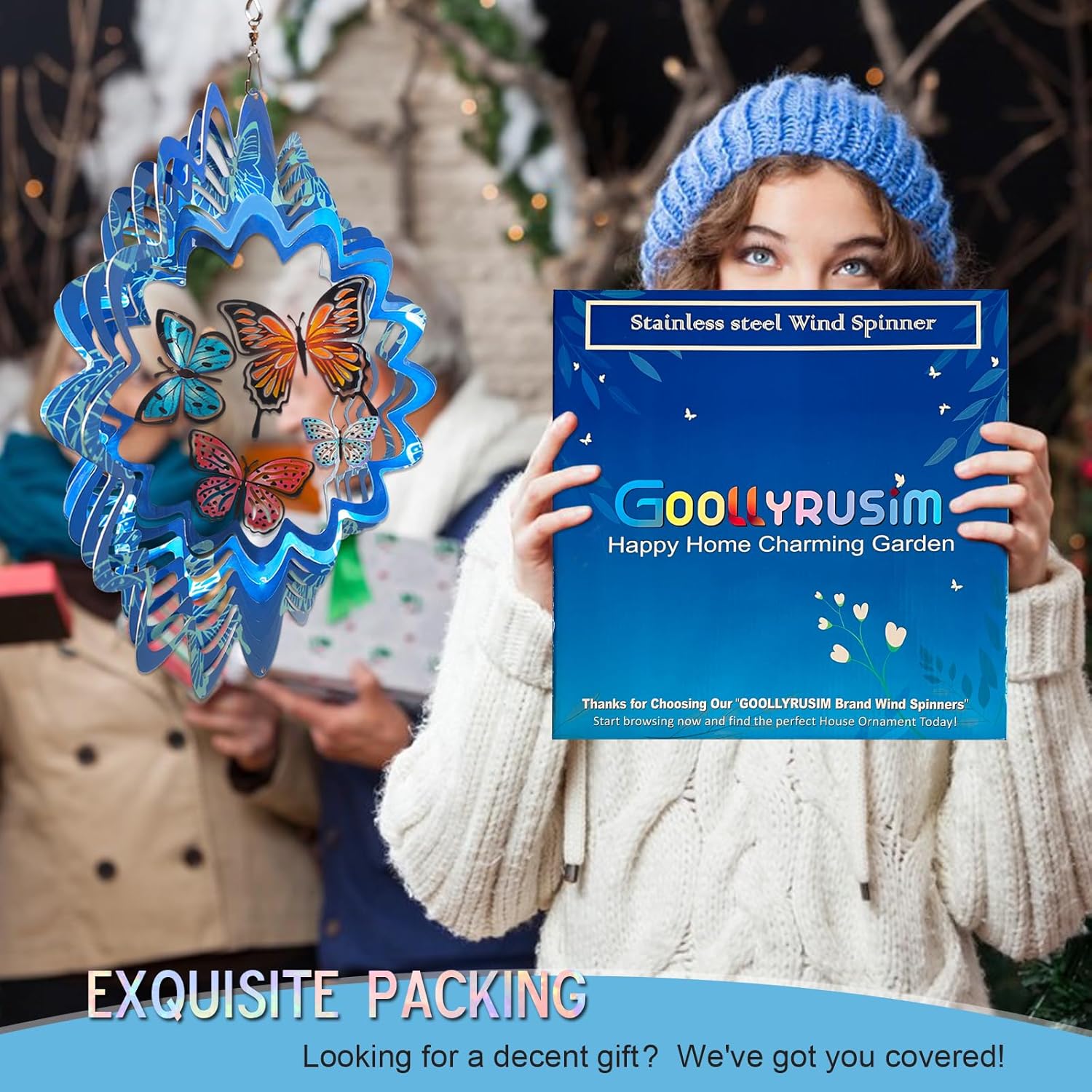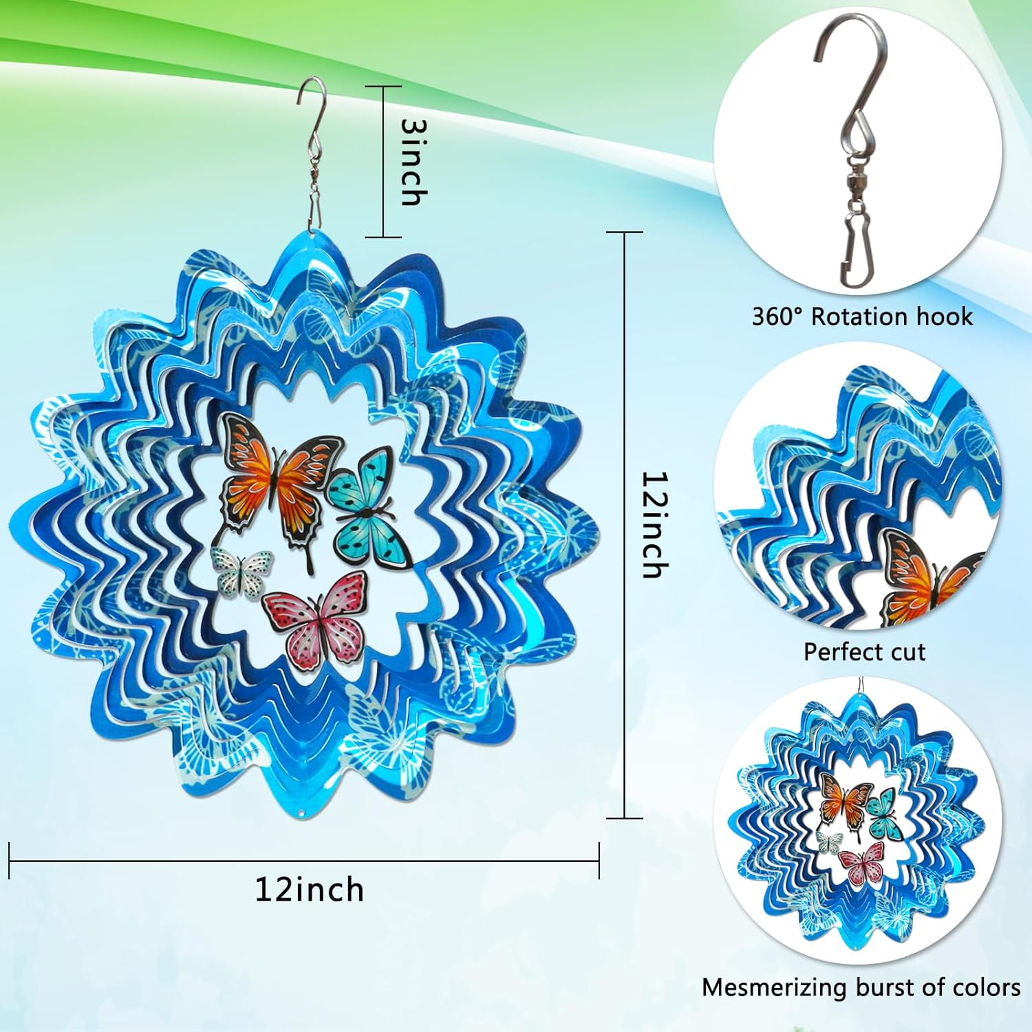 Goolyrusim Wind Spinner Outdoor, Butterfly Wind Spinner, 12in Laser Cut Stainless Steel Hanging Wind Sculptures, Garden Decoration Yard Decor, Butterfly Gifts for Women Mom Wife Girl Sister Grandma