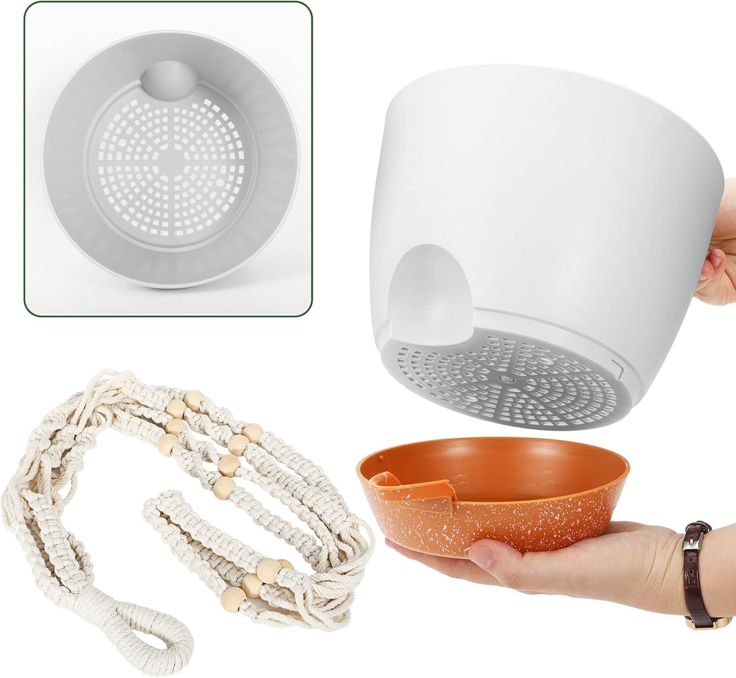 • 【Modern Simple Design】A simple modern aesthetic and clean matte finish hanging planters,indoor plants bringing out a minimalistic styled. the pots with the hanging planter are perfect for indoor plants of different colors ,brings out a modern stylish visual representation for any home/office decor without any sense of violation.