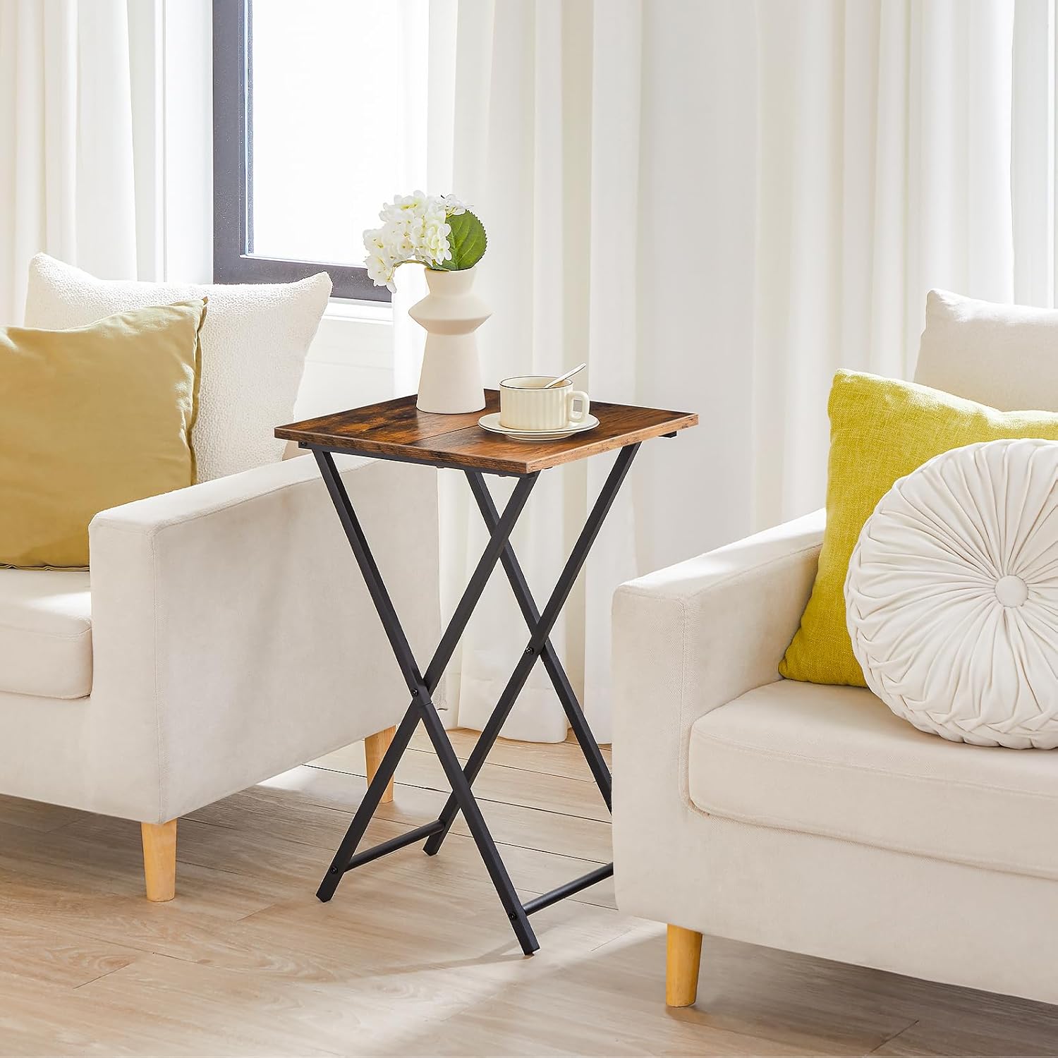 • Multiple Advantages: Don't want the side table taking up too much space when not in use? This TV tray can easily be folded and stored under the sofa, freeing up more common space.When folded, the folding table is portable to be carried anywhere needed