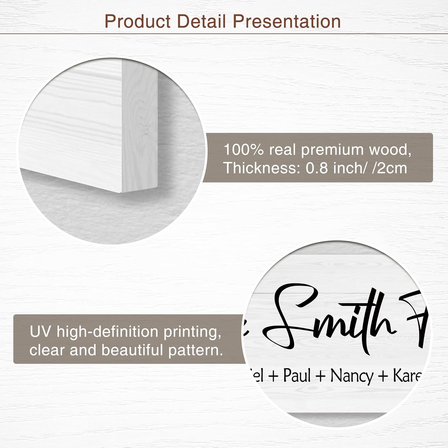 Bemaystar Personalized Family Name Wooden Sign, Rustic Farmhouse Decor - Home & Wedding Gift, 16" x 6"