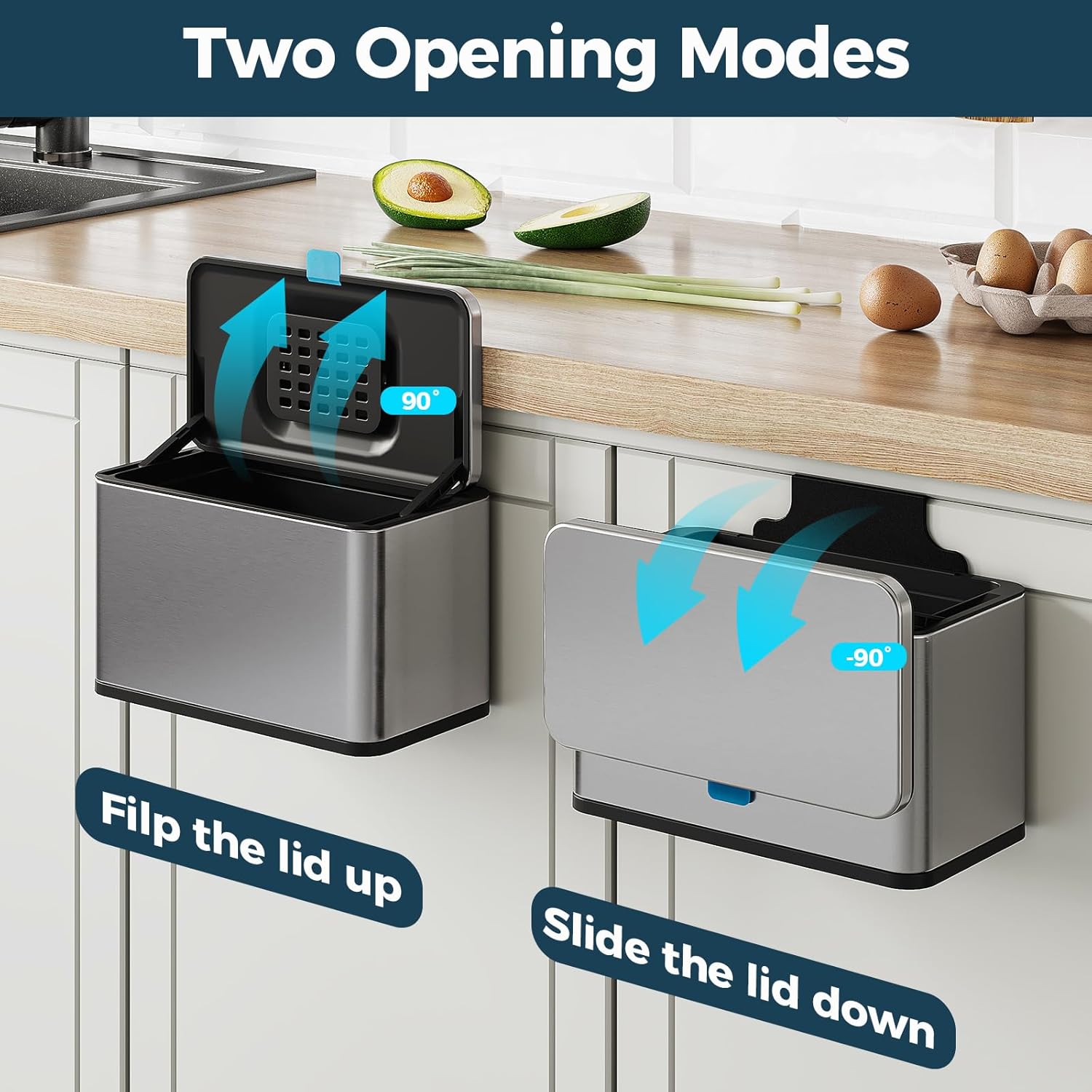 • Two Opening Modes - Flip up the lid or Slide the lid down, Come with a comfortable silicone carrying handle allows you to dispose of the waste quickly and cleanly with a simple pull or slide, depending on your habits and position.