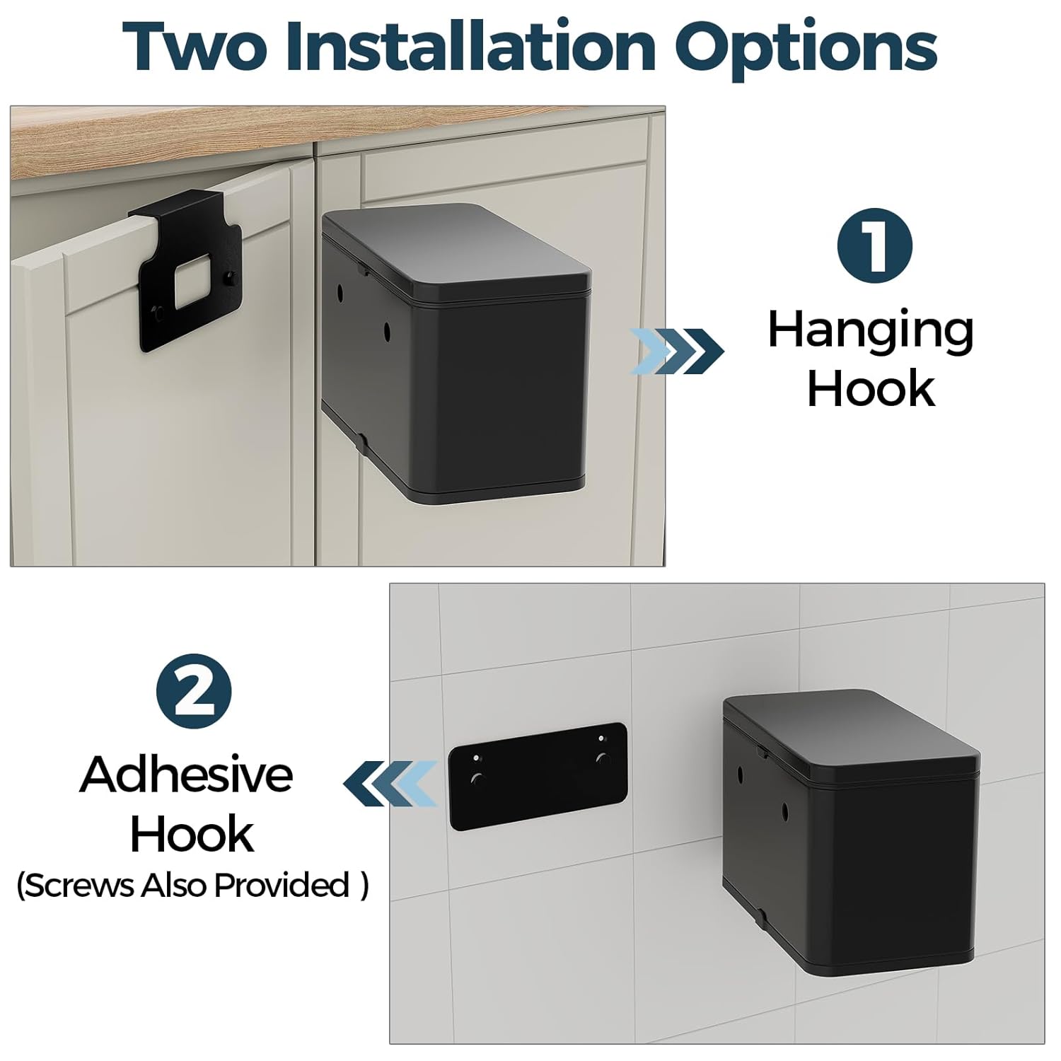 Stainless Steel Hanging Trash Can with Lid and Inner Bucket, 1 Gallon Kitchen Compost Bin for Counter Top, Under Sink or Wall Mount, Small Garbage Can for Cupboard/Bathroom/Bedroom/RV, Black