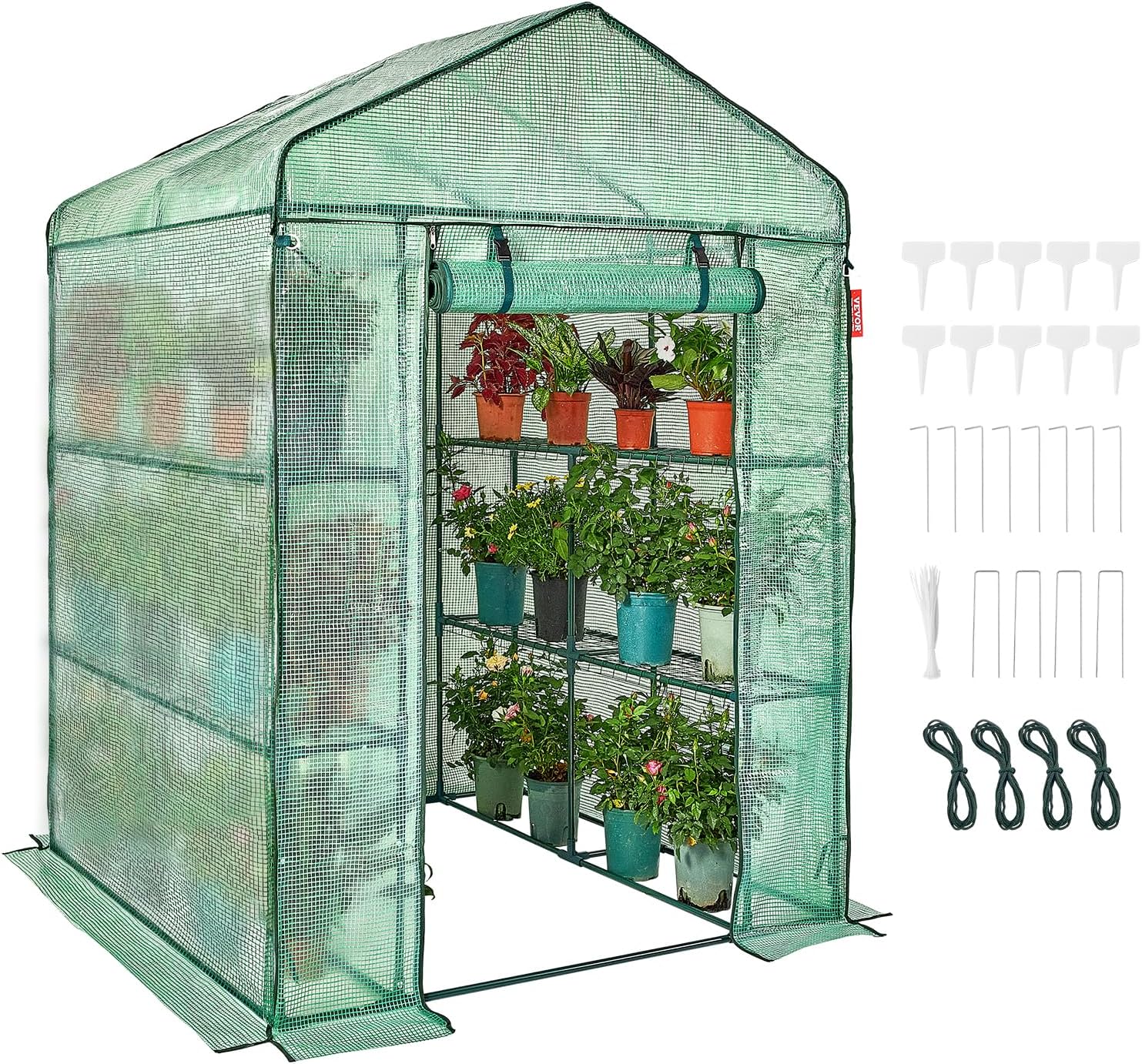VEVOR Walk-in Green House, 55.5 x 55.5 x 78.7 inch, Portable Greenhouse with Shelves, High Strength PE Cover with Roll-up Zipper Door and Steel Frame, Set Up in Minutes, for Planting and Storage