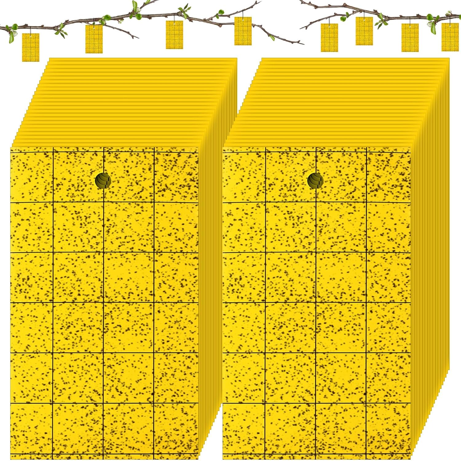 • Yellow Sticky Traps: the package includes 100 pieces of sticky fly traps for flying plant insects and 100 pieces of twist ties, the bright yellow color will attract flying insects, thus allowing you to trap them easily