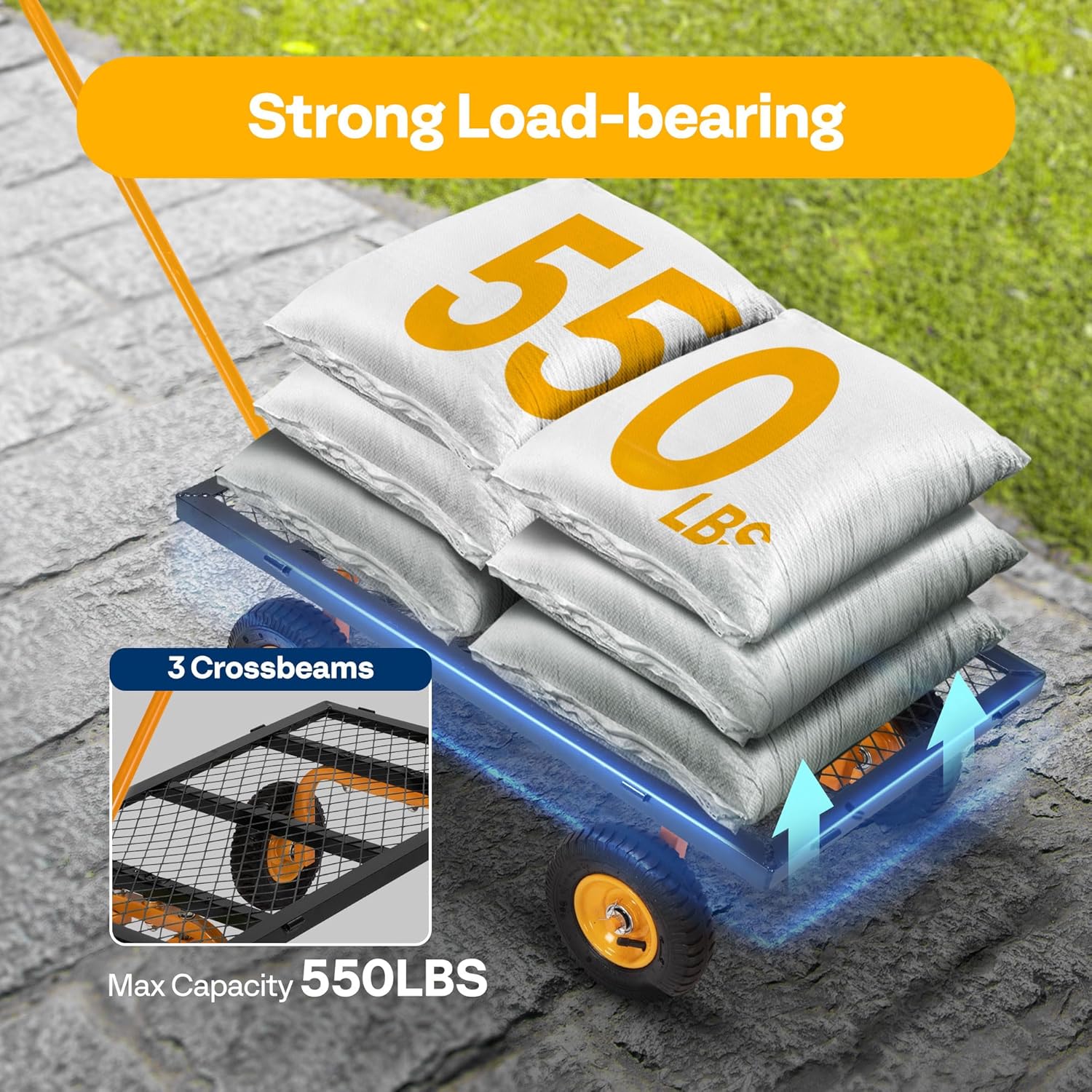 • POWERFUL LOAD AND LARGE CAPACITY - VIVOHOME's multi-functional garden cart has meticulous workmanship and strong design sense; This garden cart has a steel mesh bed that is 34’’ in long and 18’’ in wide, carrying large amounts of planting tools with ease; Its maximum load can reach 550 lbs.; From chopped wood to fertilizer, you can carry them with this practical and convenient cart with ease (to prolong its life, long-term heavy loading is not recommended)