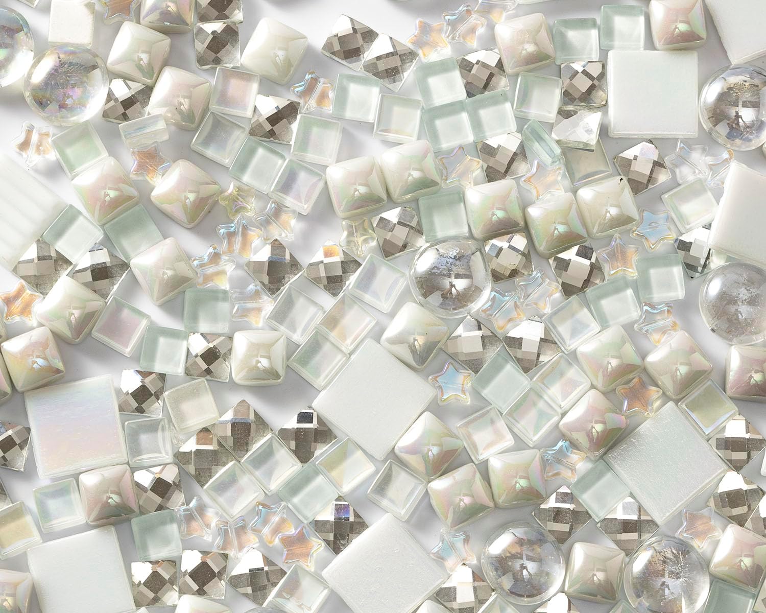 • Exquisite Assortment of White Glass Mosaic Tiles: Discover the ultimate collection of white-colored glass mosaic tiles for crafts, including mirror mosaic, crystal mosaic, and clear glass gems. This unique assortment ensures endless creative possibilities for your mosaic projects
