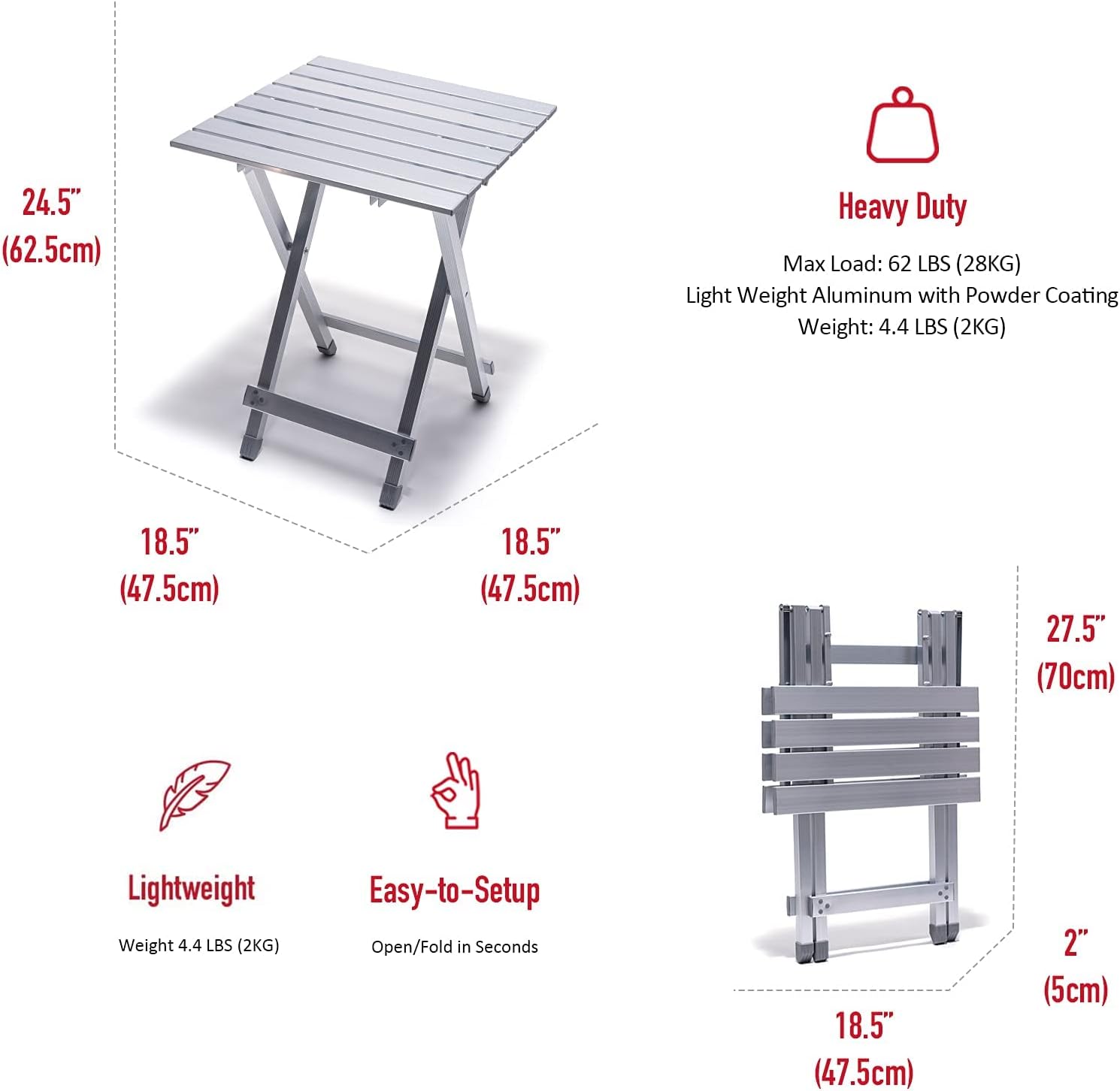 • Built to Last: The lightweight aluminum with powder coating has great strength, durability, This outdoor compact folding side table affords up to 62 LBS (28KG) weight capacity, and it is 100% waterproof for effortless clean-up.