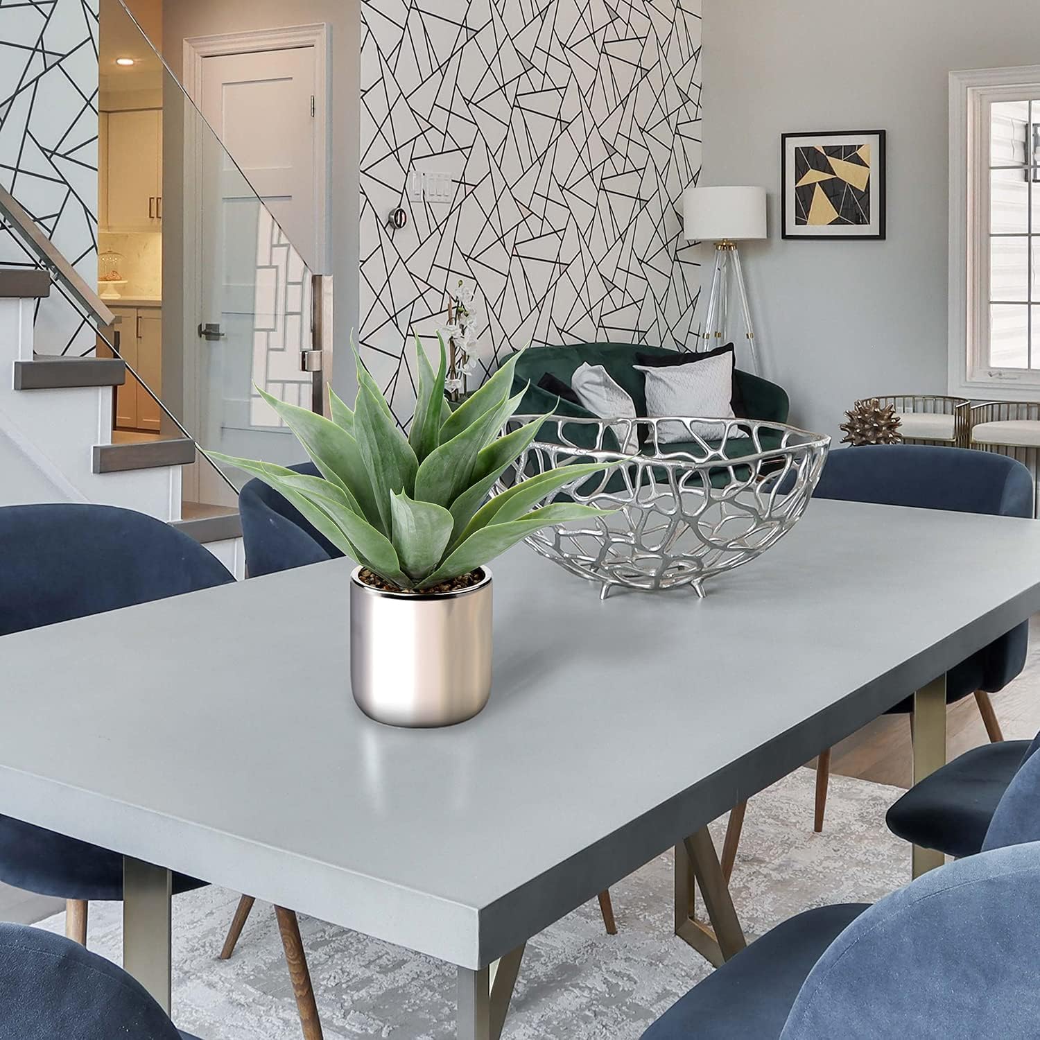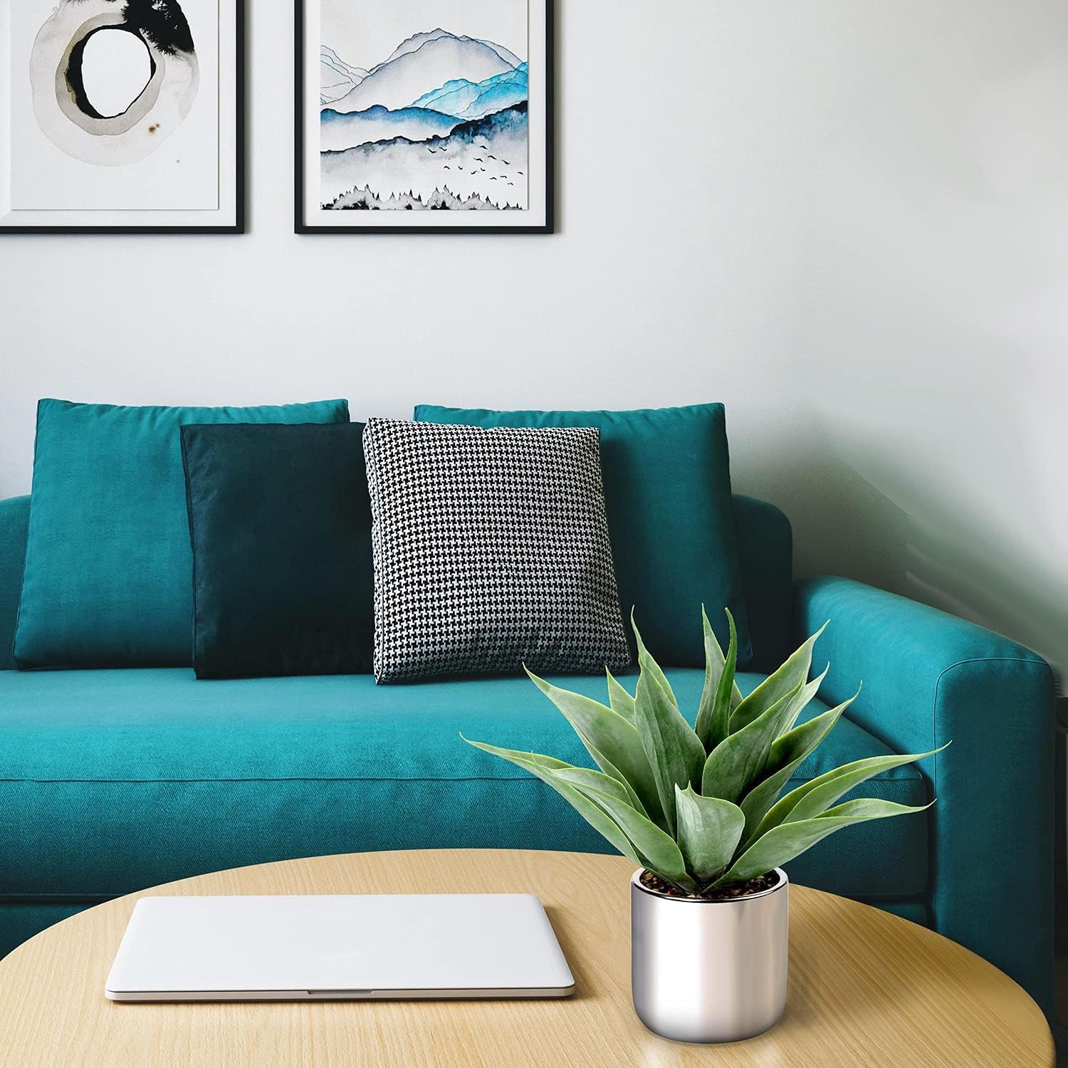 • [High-quality Artificial Agave Plant] -13 faux aloe vera leaves are elegantly arranged in a sturdy, shiny silver-plated pot and surrounded by natural stone pebbles. The overall height of faux potted plant is about 13". Luxurious pot: 4.3" W x 4 .7" H.