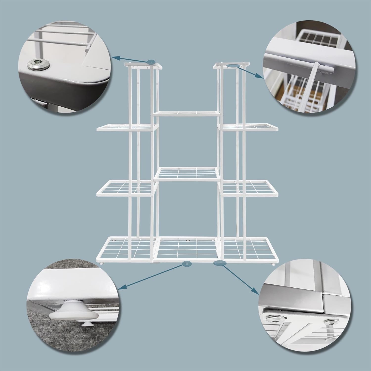 4 Tier 11 Potted Metal Large Plant Stand for Indoor Outdoor Flower Pot Display Planter Shelf, White
