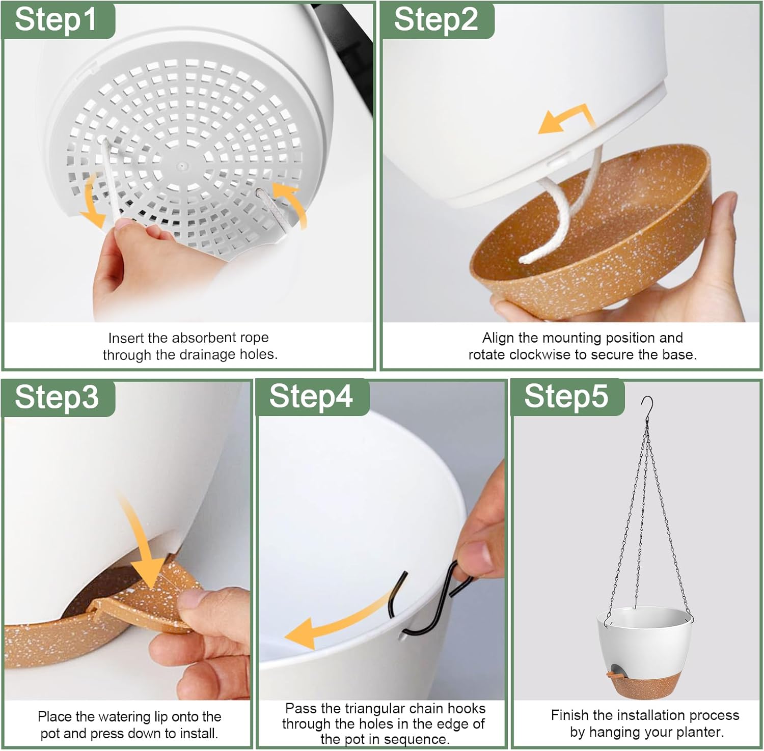 • Water Reservoir with Removable Tray - Water storage up to 7-14 days. Our hanging plant pots come equipped with a removable tray that doubles as a water reservoir, ensuring your plants are watered for up to two weeks while you are away.