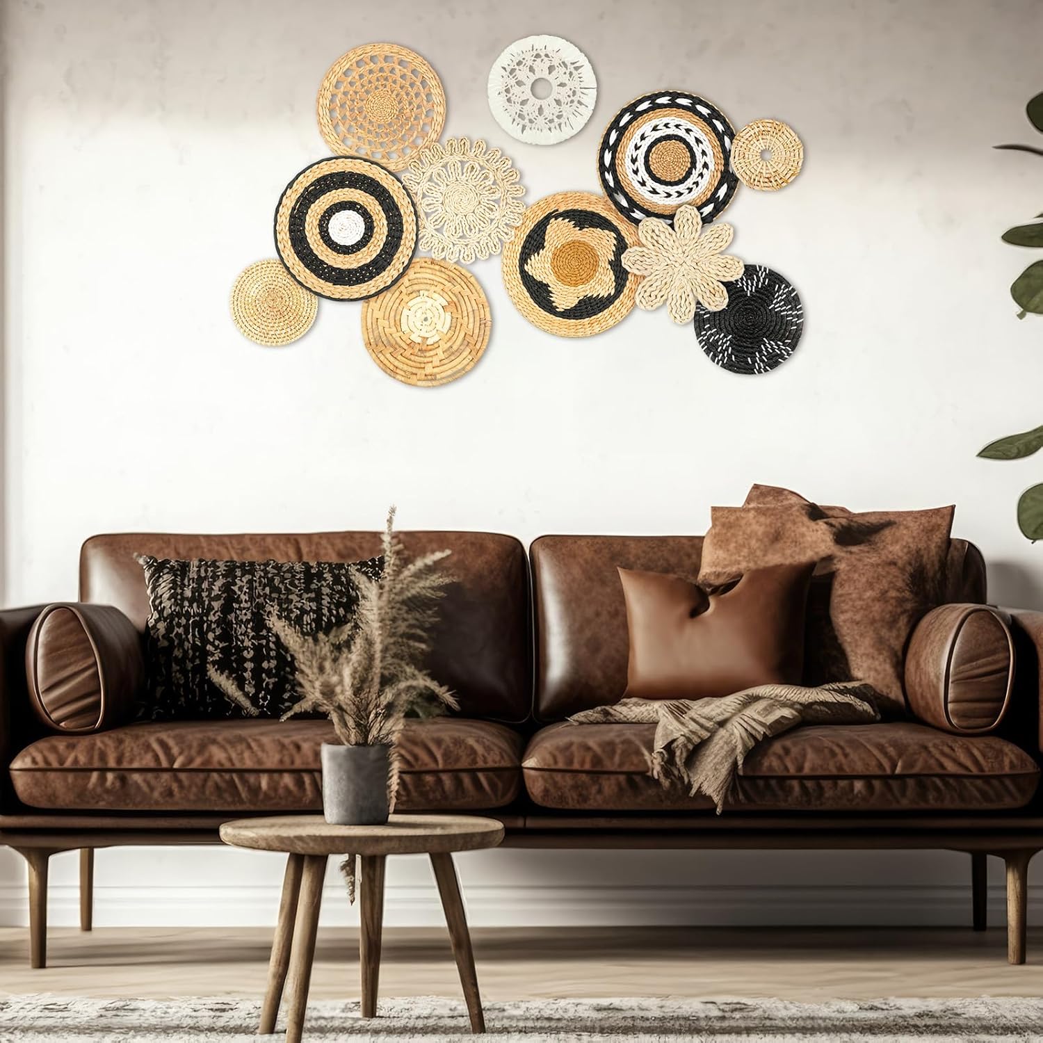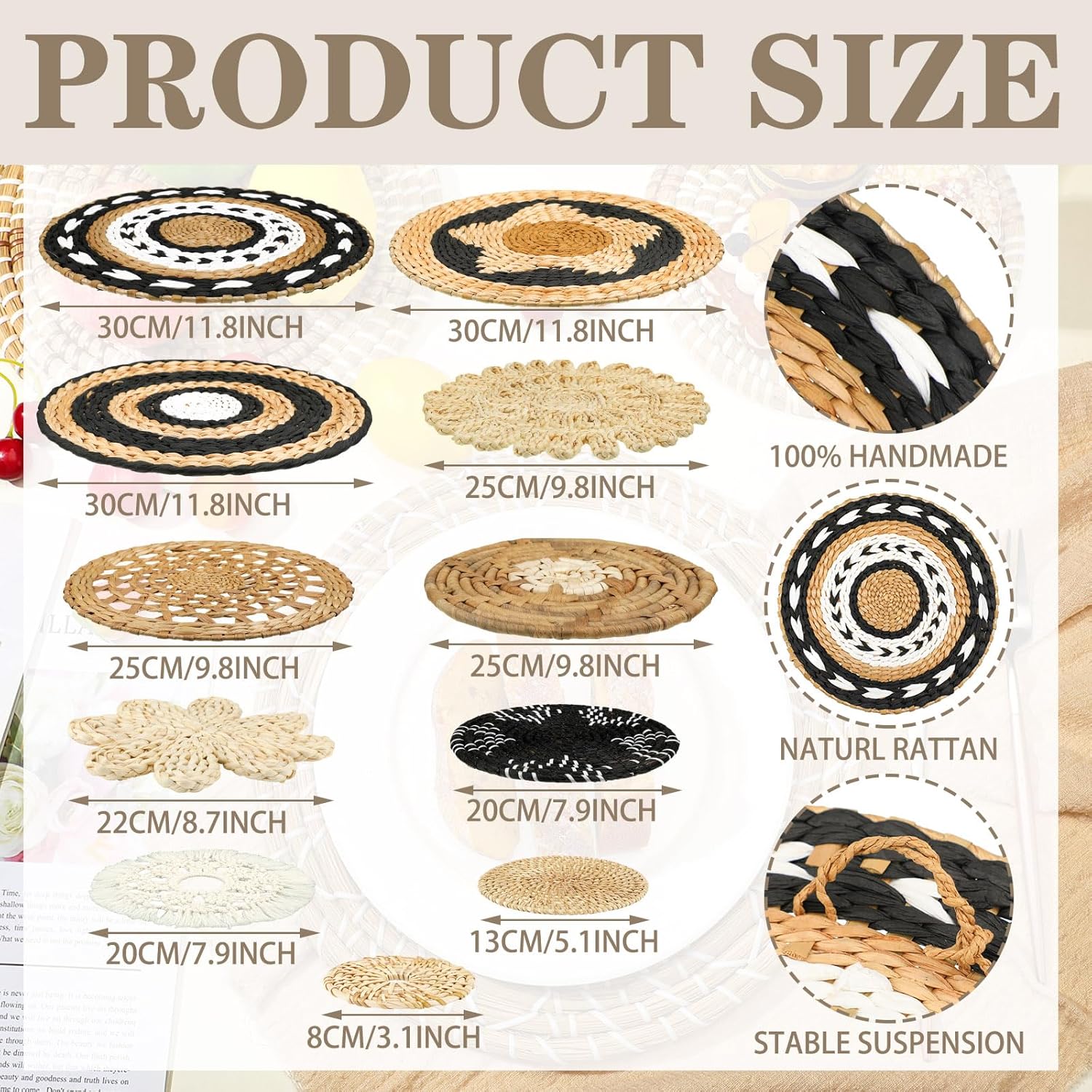 • Wide Range of Applications: boho basket wall decor set as placemats, or as decorative baskets to store toys and accessories, the rustic basket wall art is suitable for many occasions, such as hotels, restaurants, living rooms, bedrooms, schools, stores, offices, dorms, shops, Christmas and more, bringing you an elegant and classic feeling