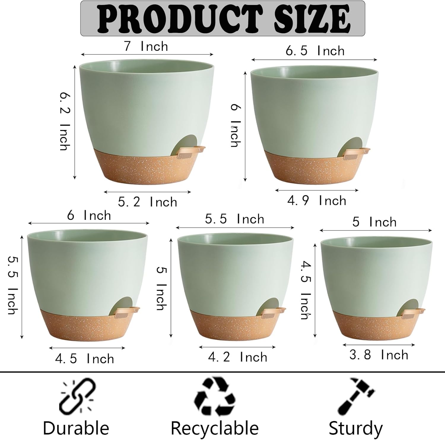 • Package content: 5 pcs * Planters set. Crafted with precision and combines with five different sizes. Opening diameters of 7/6.5/6/5.5/5 inches. Please note that the planters are sold separately, and plants are not included.