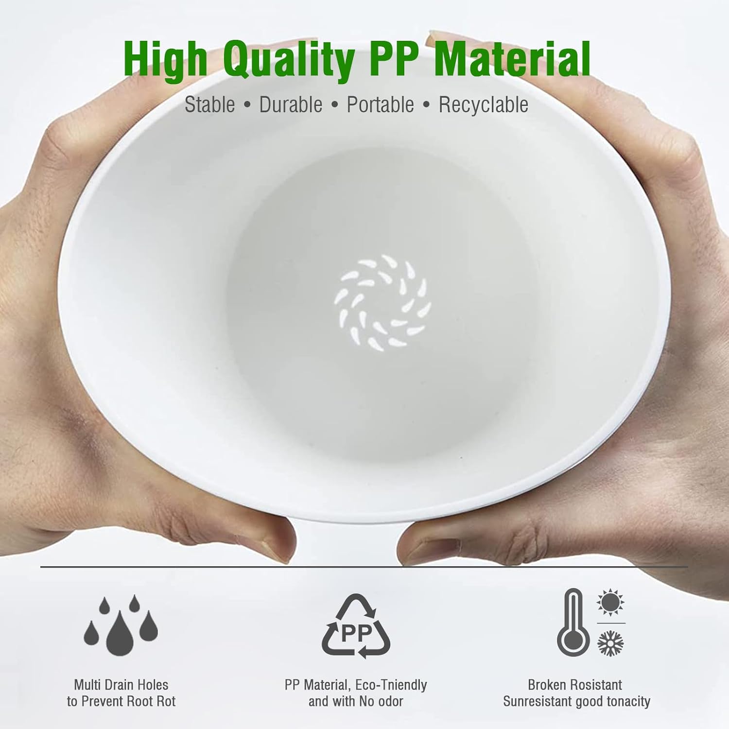 • DROP-SHAPED DRAINAGE HOLES & REMOVABLE SAUCER - Each flower pot have 20 drainage holes at the bottom that help to drain excess water effectively and quickly, but the drop-shaped holes can be prevent the soil from draining with the water. Also prevent house plants overwatering.