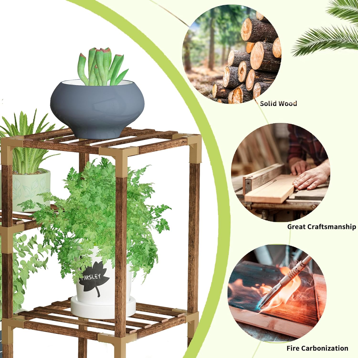 • Durable Material: HOMKIRT plant stands are made of solid wood, shelves are carbonized at 600℉ high temperature, making them have a nice stained look, can be indoors or outdoors on sunny or cloudy days.