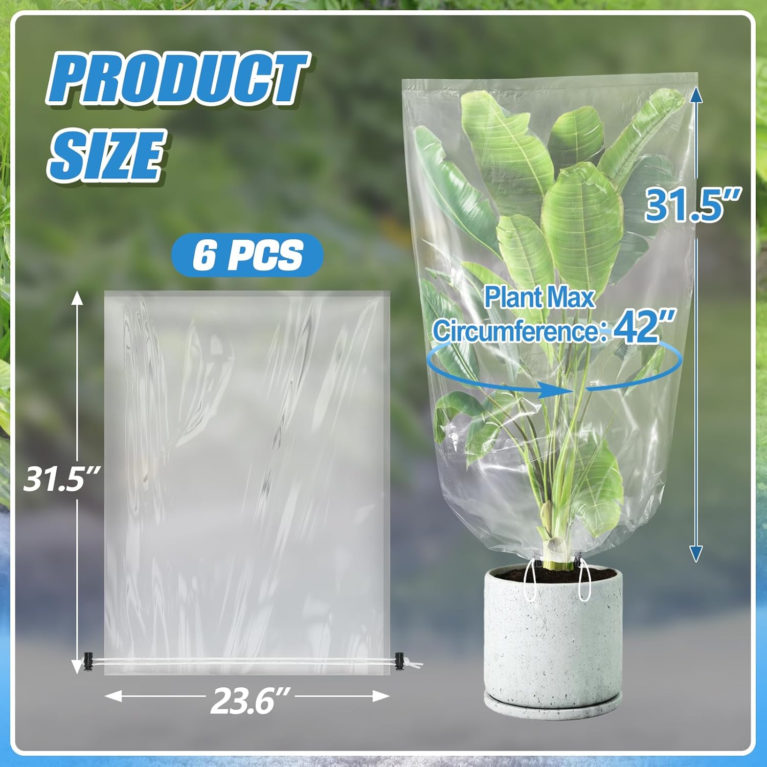 • [Ideal Size] Each plastic plant cover measures 23.6" x 31.5" and is suitable for various small plants indoors or outdoors, such as small shrubs, bushes and potted plants. 6 pieces come in a set, which can meet the needs of most small potted plants and shrubs.