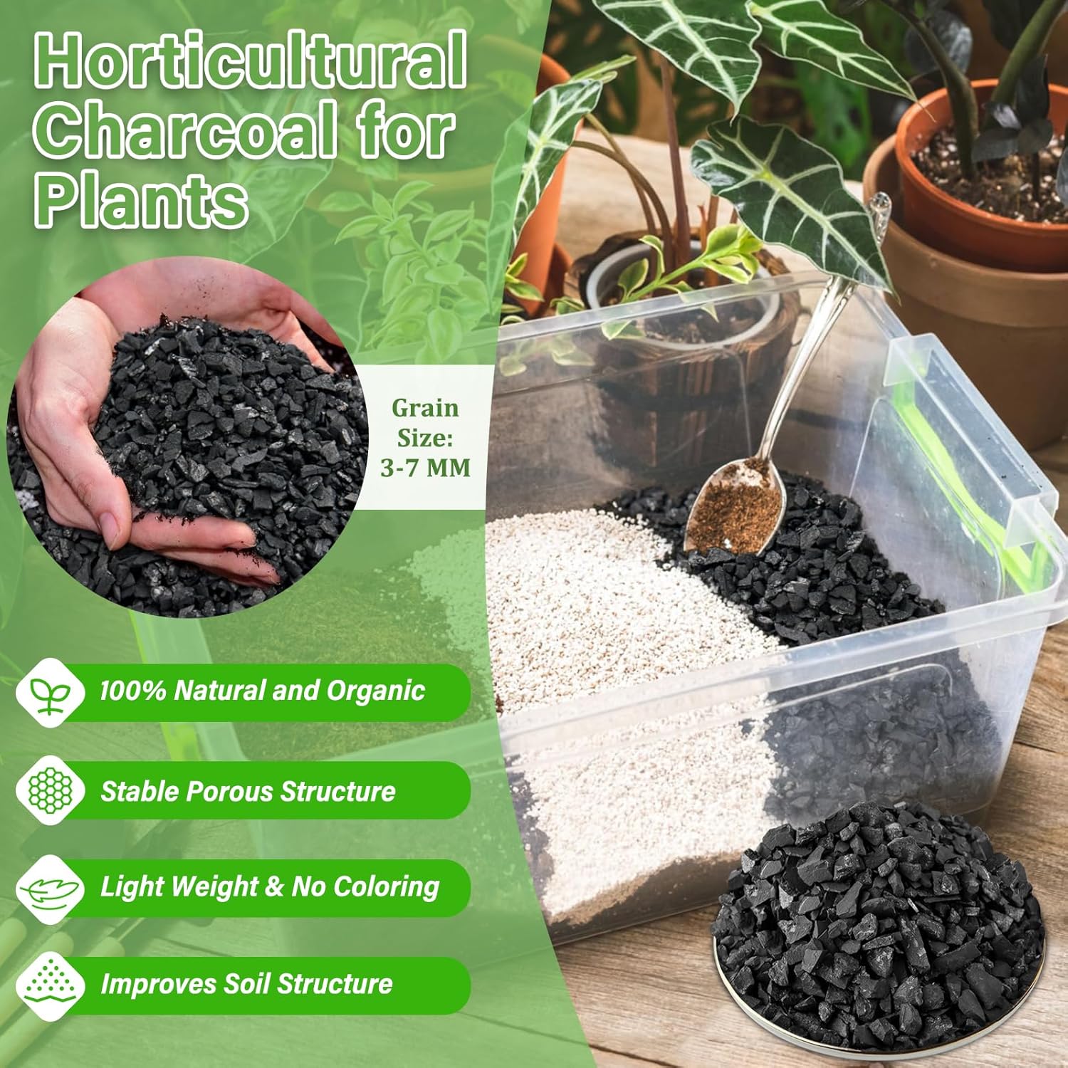 • Charcoal Orchid Soil Amendment: Our horticulture charcoal is natural hardwood horticulture charcoal, which is a lightweight and mild soil additive that will assist in draining excess moisture from any container or potted plant; They are great for adding to any plant soil for drainage such as bonsai soil, orchid soil, and succulent soil