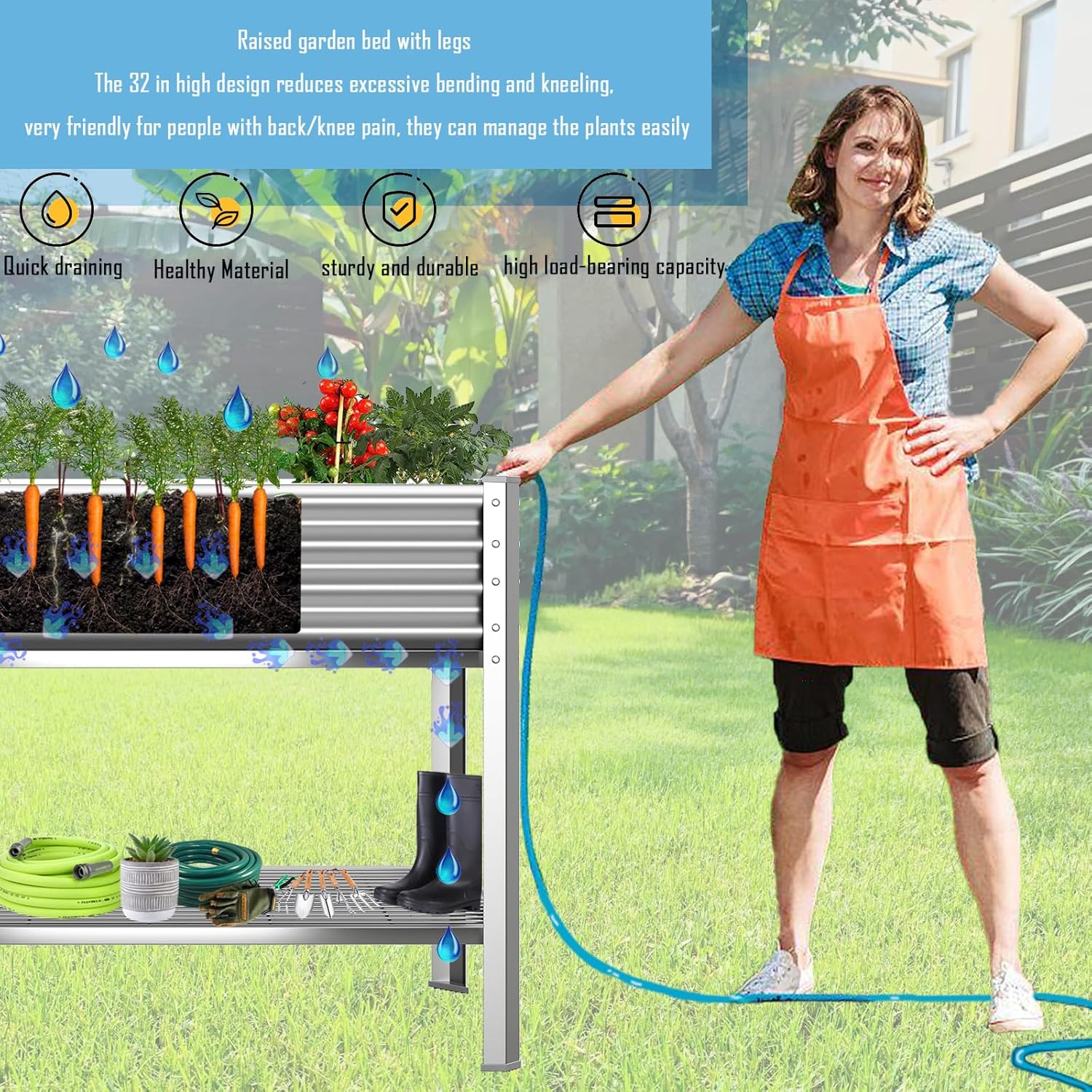 • Special Feature : garden bed with drainage holes, raised garden bed with legs, raised planter box with storage shelf
