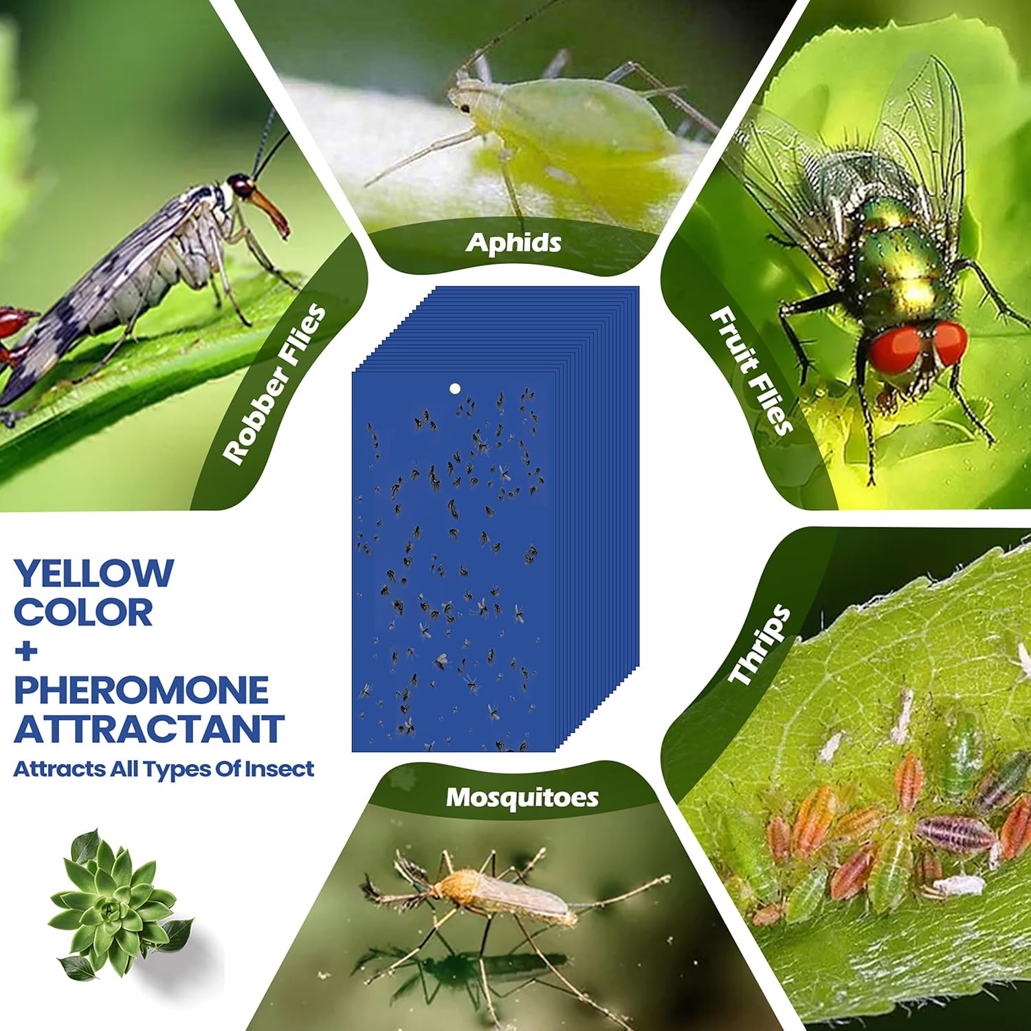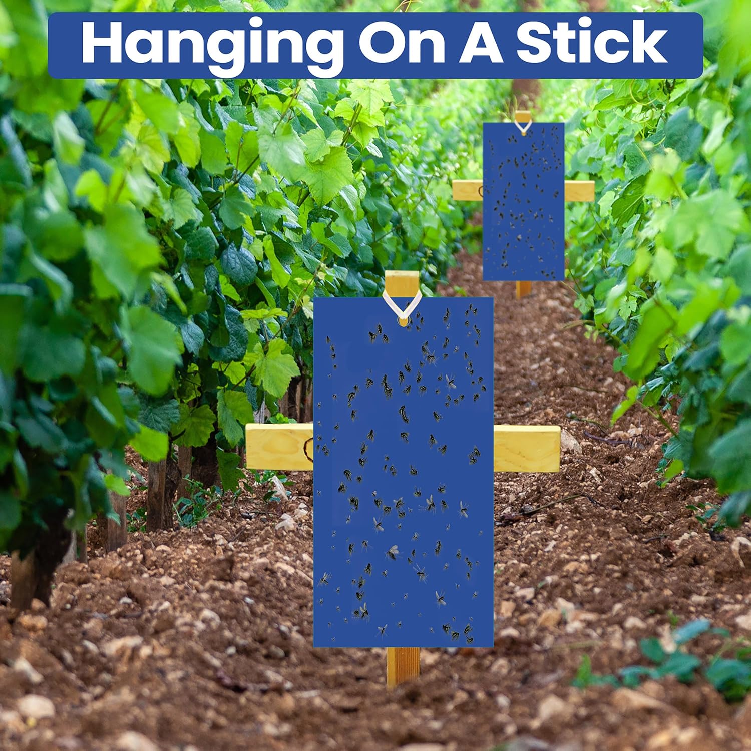 • Double Sided Stickiness: our blue sticky traps are designed to be double sided, widely capture the most pests, includes white flies, leaf miners, fungus gnats, shore flies, midges, mosquitoes, and other flying insects, you can place them in the garden, lawn, yard, next to the trash can and so on