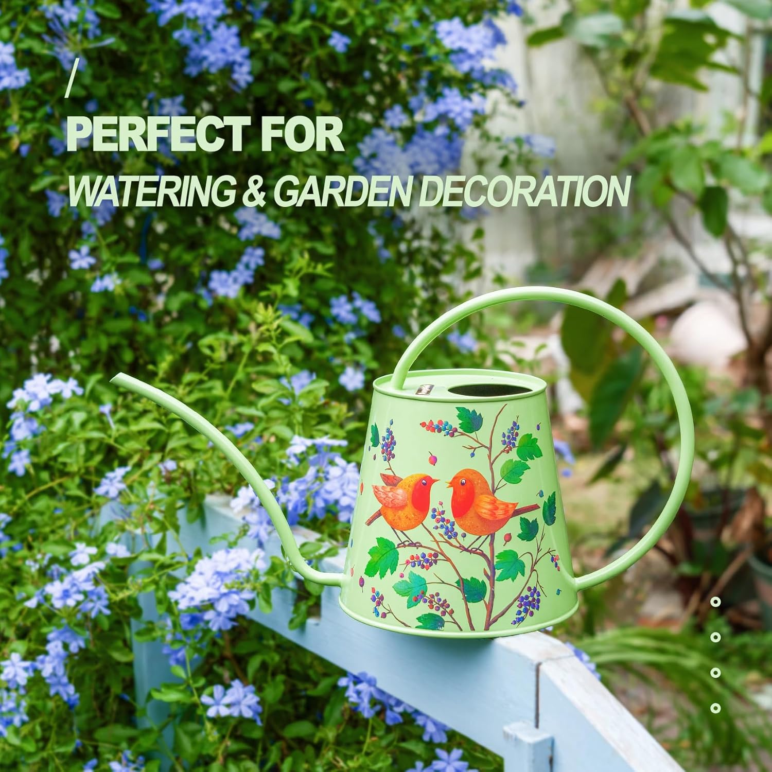 Berry&Bird House Plants Watering Can - Indoor & Outdoor 1/2 Gallon Stainless Steel Water Can with Long Spout Garden Decoration for Flower Bonsai Succulent Gardening Large Watwer Bottle(2L/Robin)