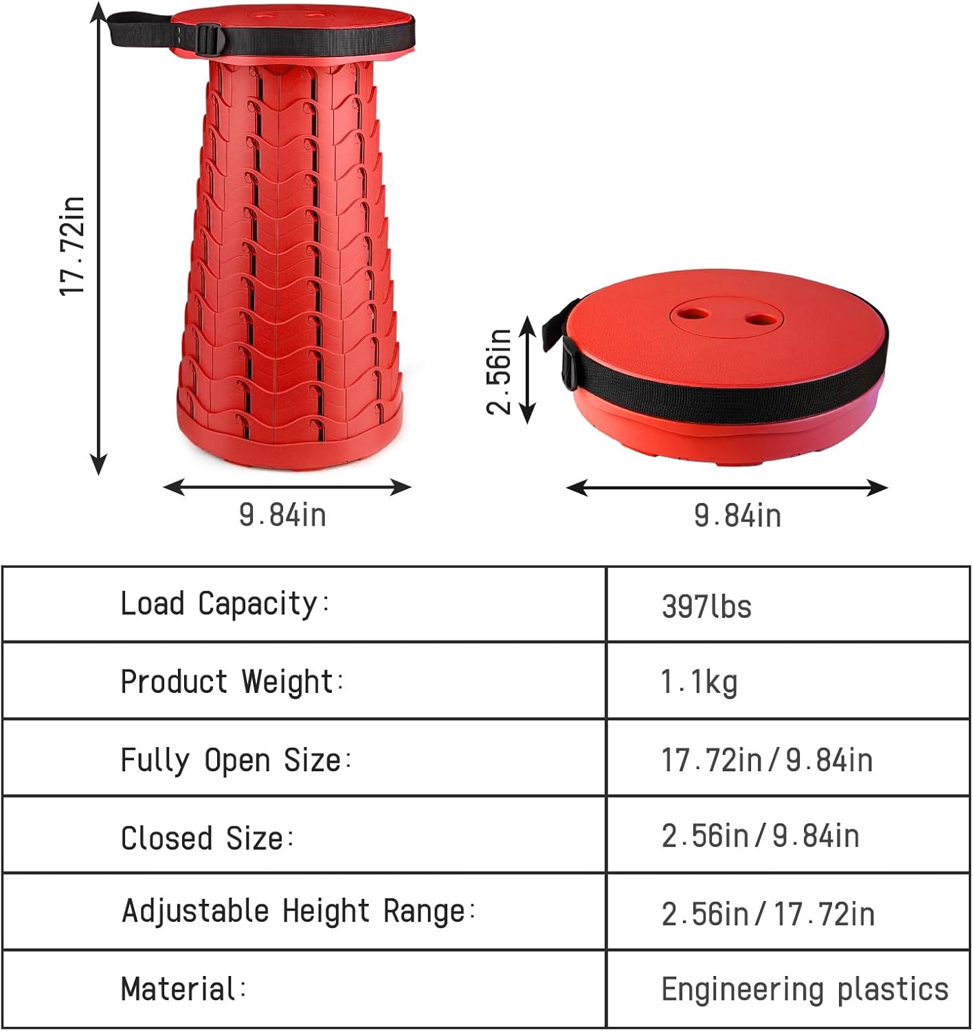 • STURDY AND RELIABLE: Our portable collapsible stool is designed to withstand a weight capacity of up to 397lbs, providing optimal stability and support for users. Its patented anti-tilt fish scale structure ensures balanced seating, while the non-slip bottom strips offer enhanced safety.