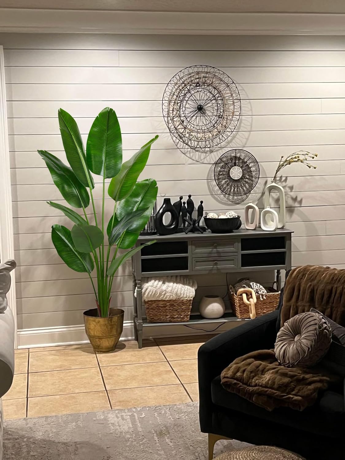 • This bird of paradise tree is 6 feet tall and pre-assembled in a heavy-duty pot made of plastic and concrete, allowing it to stand independently. Additionally, the cylinder pot is moderately sized at 6x5 inches, making it easy to fit into other pots. We also include a package of real dried moss for you to place on the pot, enhancing the decorative effect for your home or office.
