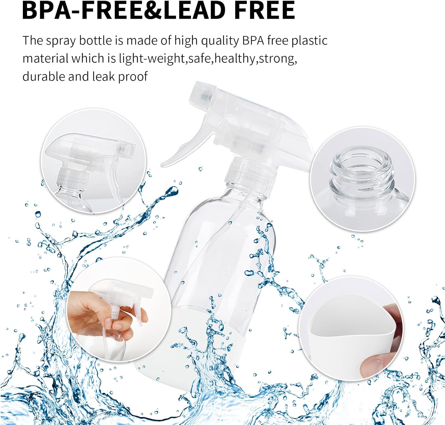• High security: BPA & LEAD FREE .Our refillable spray bottles have reached food safety level to meet your demand for storing safely and effectively. The bottle body is made of transparent glass, which is with high hardness, corrosion resistance, durability and not easy to deform. No matter what liquid is loaded, it will not produce chemical corrosion reaction, which is quite safe.