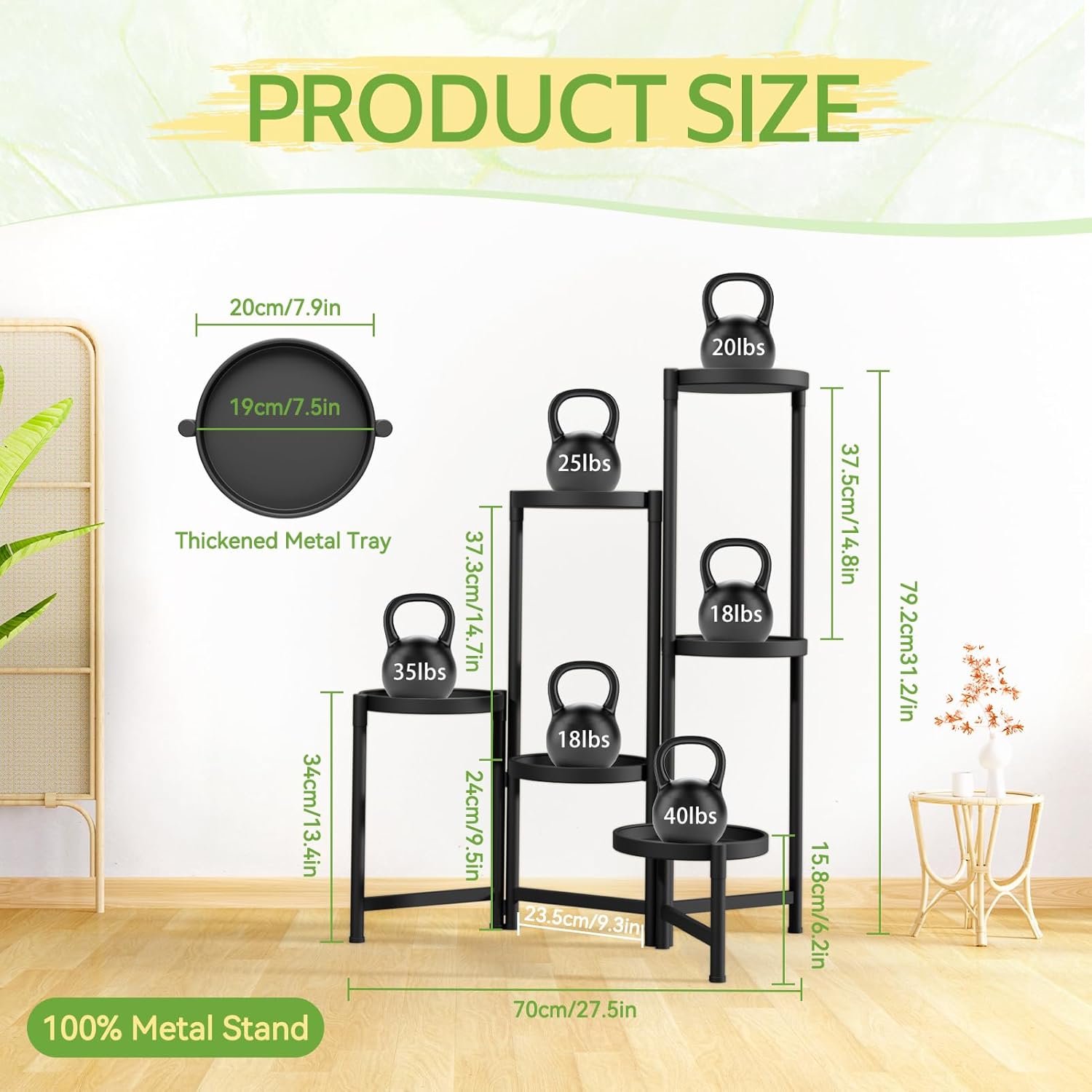 • 7.9-Inch Wide Trays with Rim: This tall plant stand features 7.9-inch round trays, suitable for pots up to 7.5 inches wide. Each tray is designed with raised edges that guard against spills and tipping, keeping your plants safe and steady