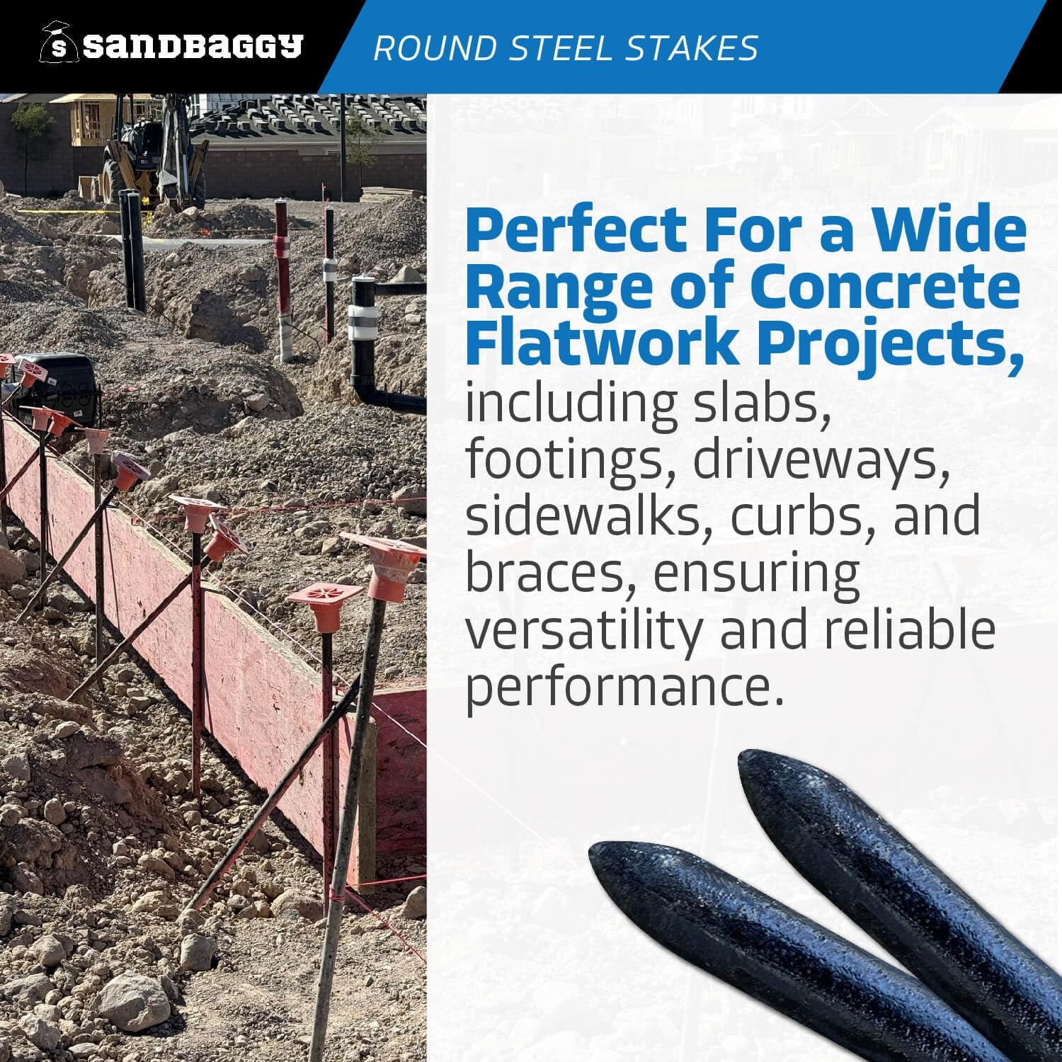 • SOLID STEEL DESIGN (NOT HOLLOW): These steel concrete stakes have a ¾ inch diameter made of solid steel! They won’t bend or break during installation and are strong enough for heavy-duty construction projects that demand reliable support.