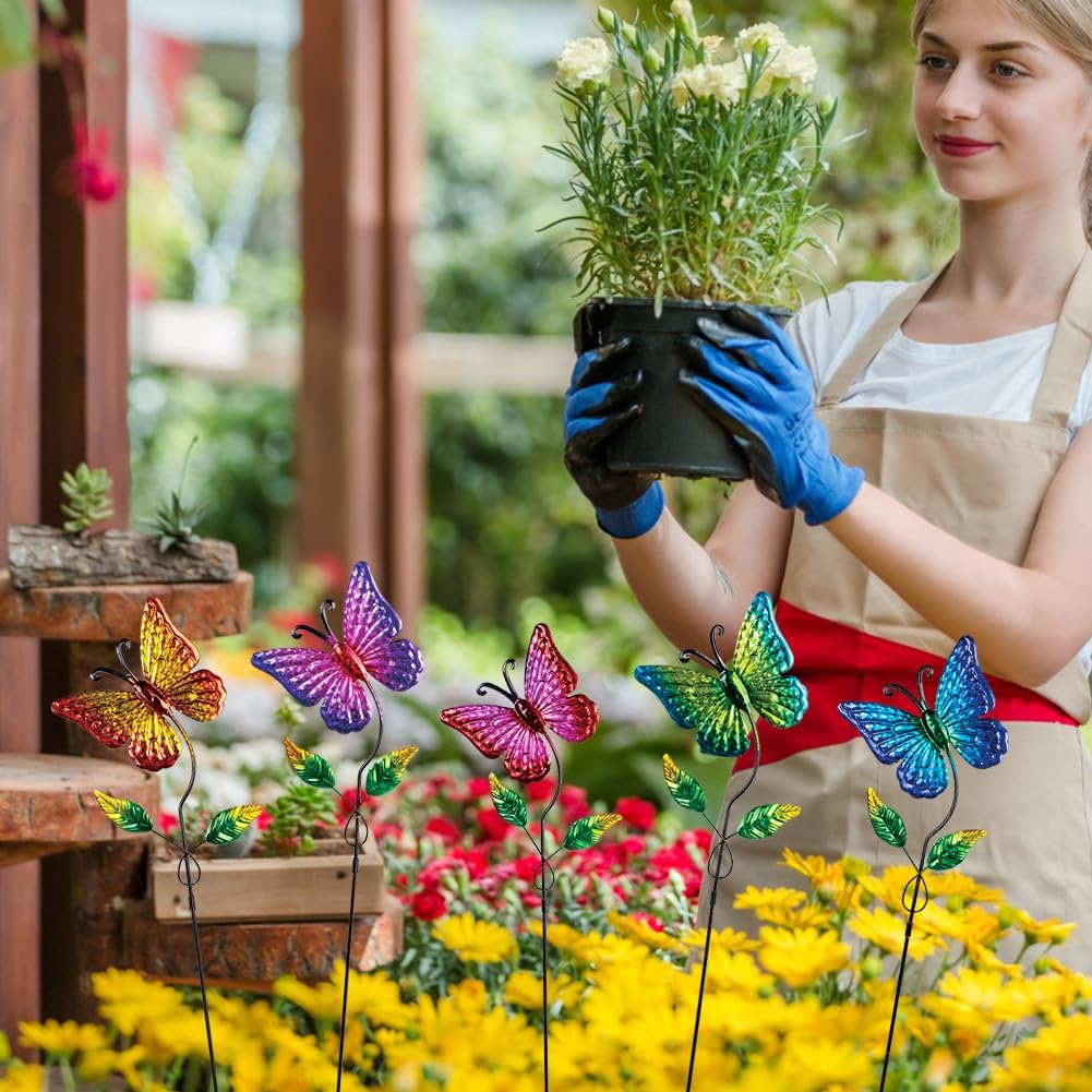 • Garden Stakes Decor:5 Pack butterfly garden stakes in different colors are made of advanced rust resistant metal. The unique butterfly shape is very exquisite. Placing butterfly decorations in your garden, yard, or anywhere you want to go will give you a fresher and more natural feeling