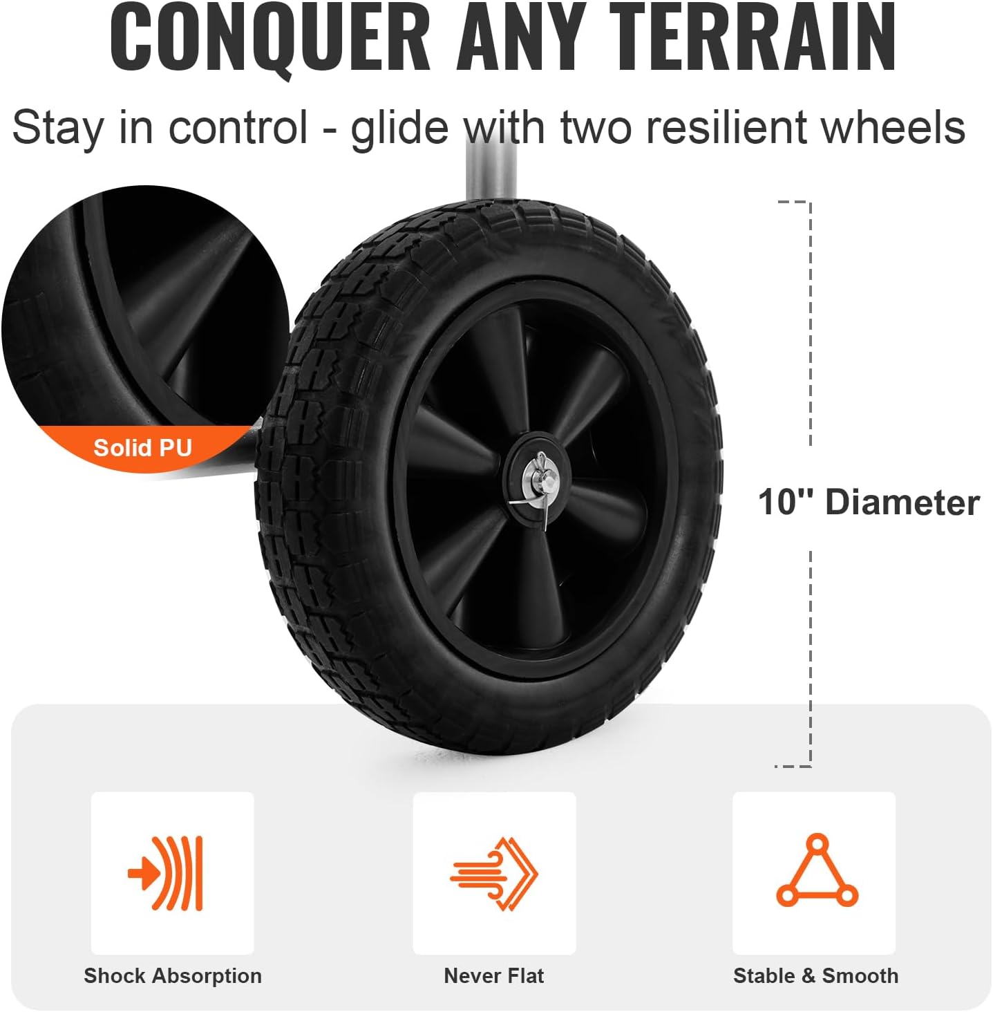 • Stable Mobility: A low center of gravity is beneficial in preventing tipping. The garden hose reel cart is equipped with two solid PVC wheels that are durable and suitable for various terrains. These wheels ensure effortless and smooth movement of the cart, even on rough or uneven ground.