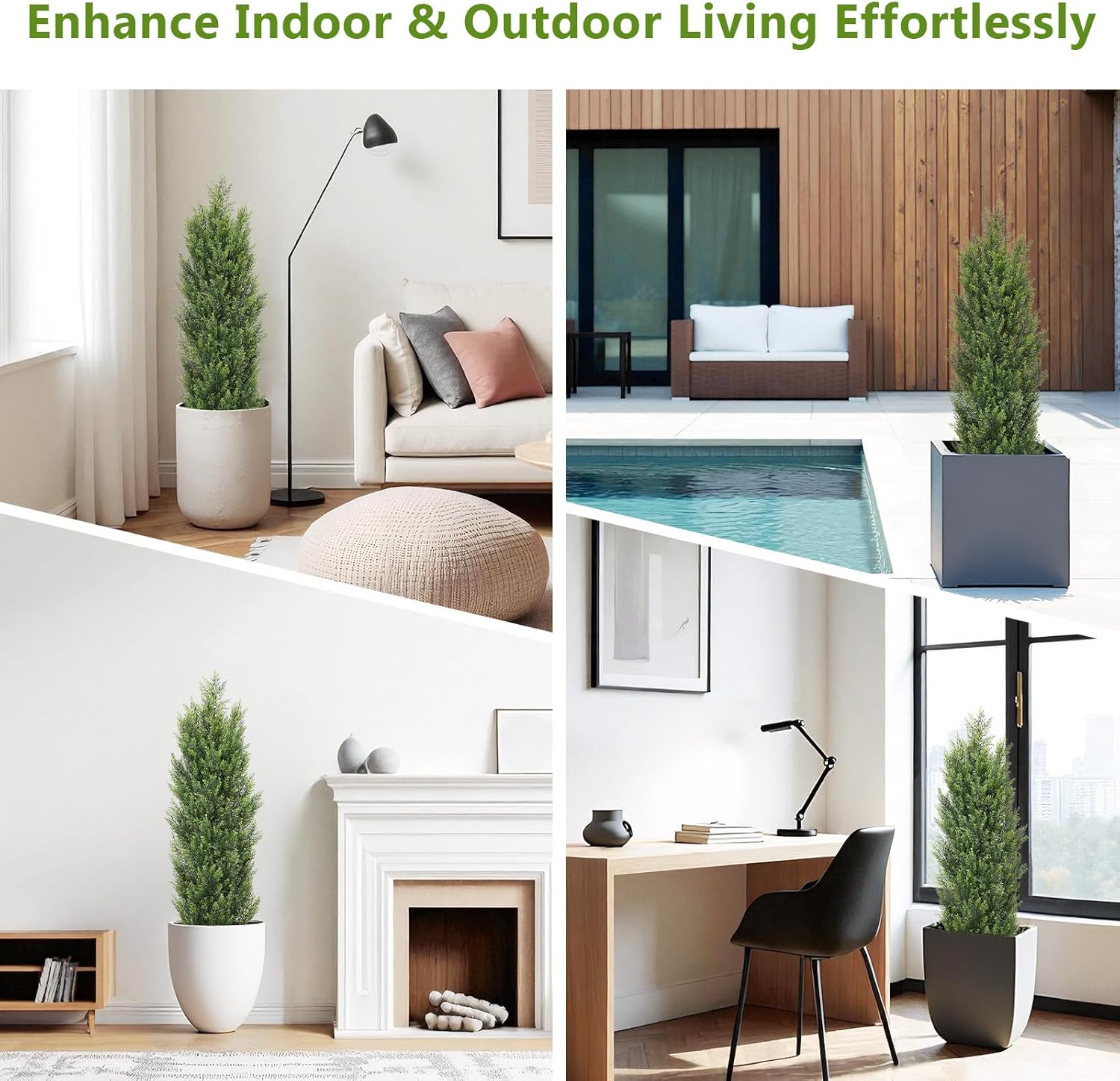 • 【REALISTIC & EVERGREEN LOOK】These cedar topiary trees artificial outdoor feature dense foliage with a natural, sculpted shape that mimics real evergreen bushes. Ideal for outdoor planters, entryways, or patio corners, they offer lifelike greenery that stays vibrant through all seasons. (Note: Branches arrive compressed. Gently shape them by hand for best results.)