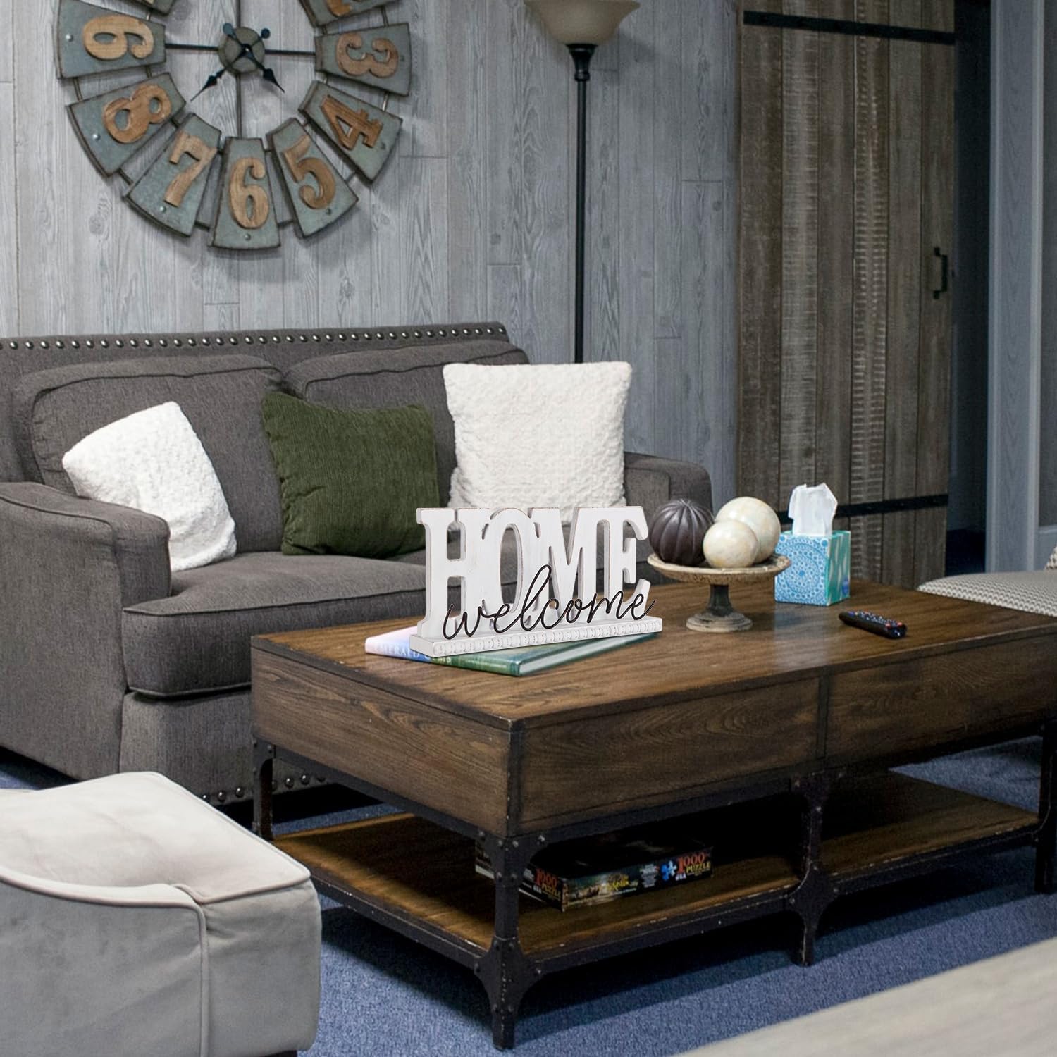• 【WOODEN HOME SIGN】 Rustic wooden word sign welcome for home decor are cut from MDF wood, sturdy and durable enough! Excellent decor for home and fit your rustic furniture style.